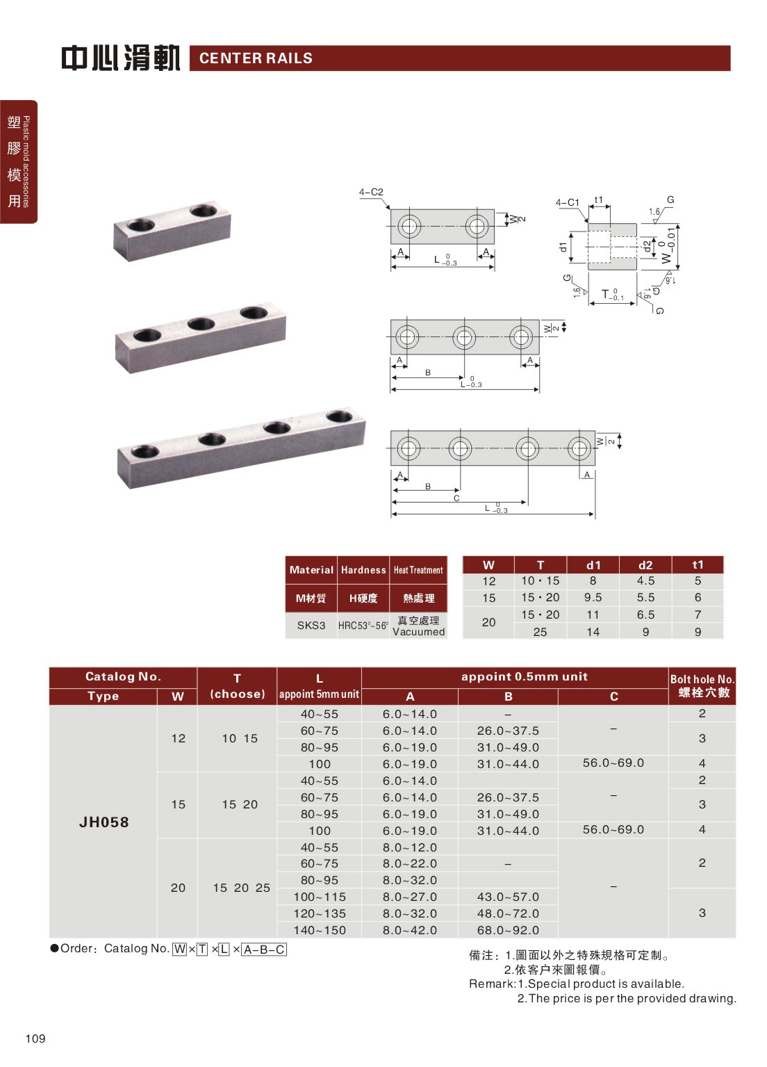 訂購:109-中心滑軌 JH058