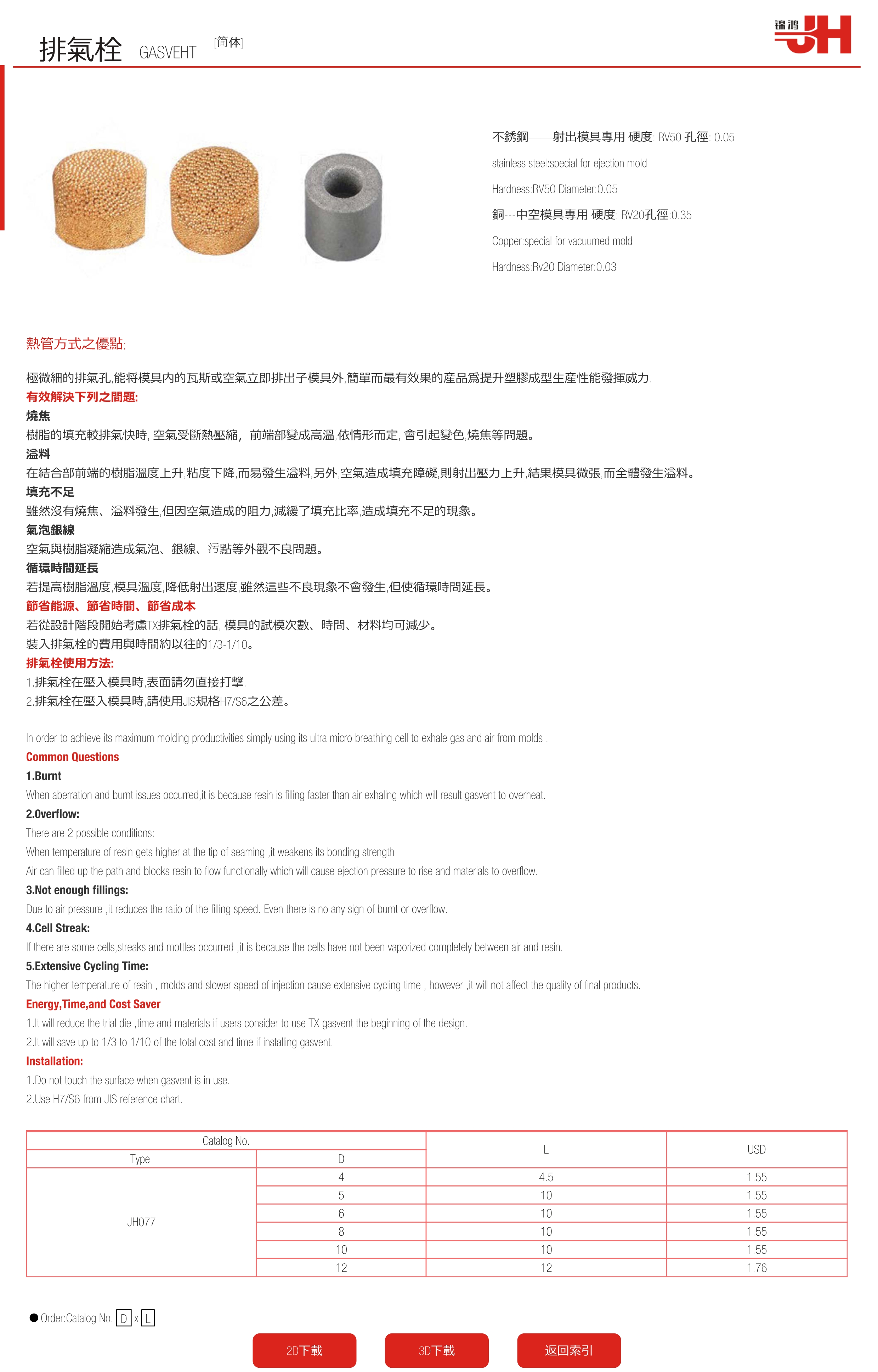 極微細的排氣孔,能將模具內的瓦斯或空氣立即排出子模具外,簡單而最有效果的産品爲提升塑膠成型生産性能發揮威力.