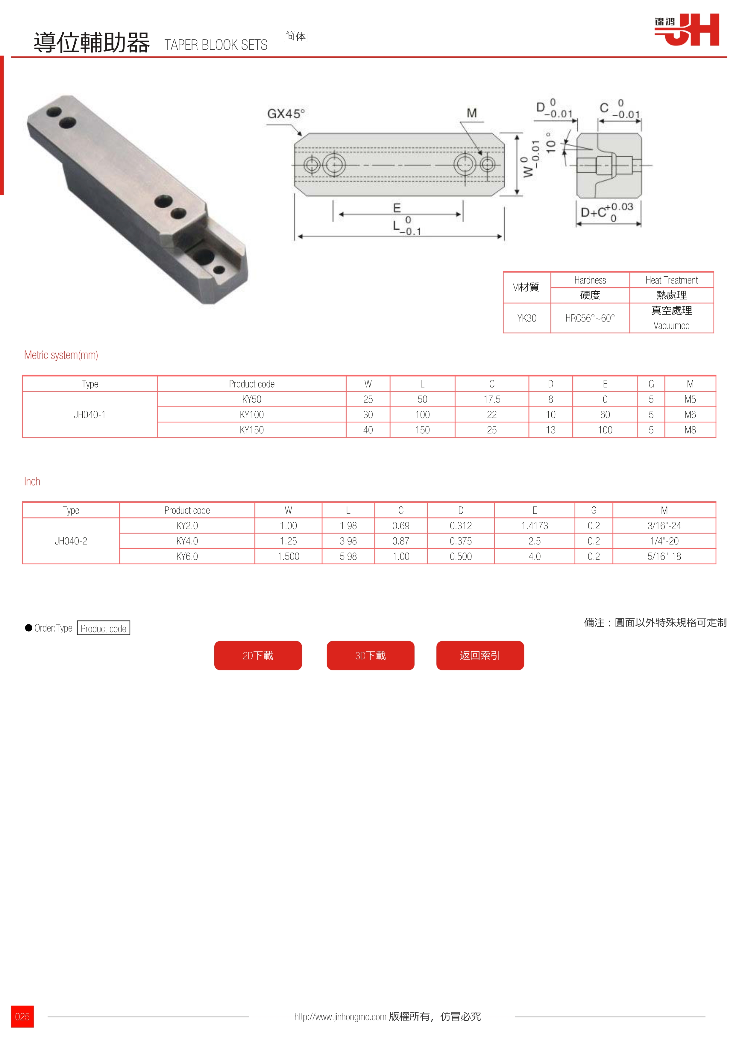 | YK30 | HRC56°~60° | 真空處理 Vacuumed |