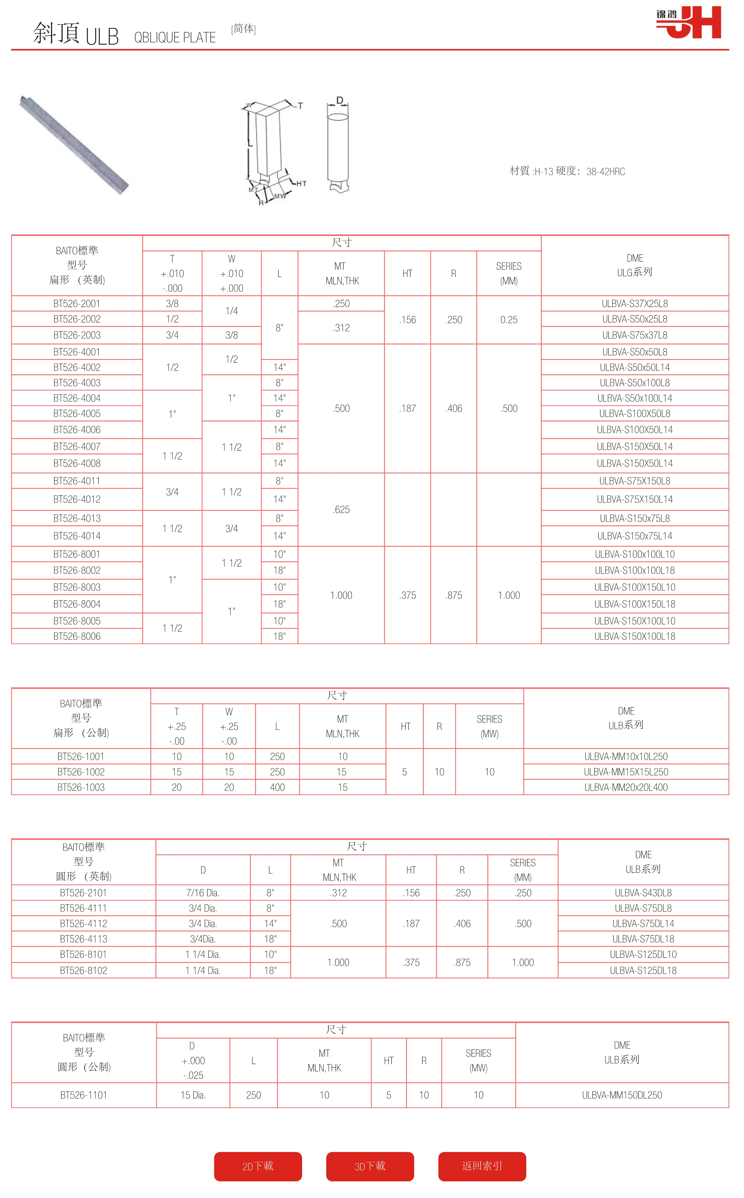 | BAITO標準 型號 扁形 (公制) | 尺寸 | DME ULB系列 | ||||||