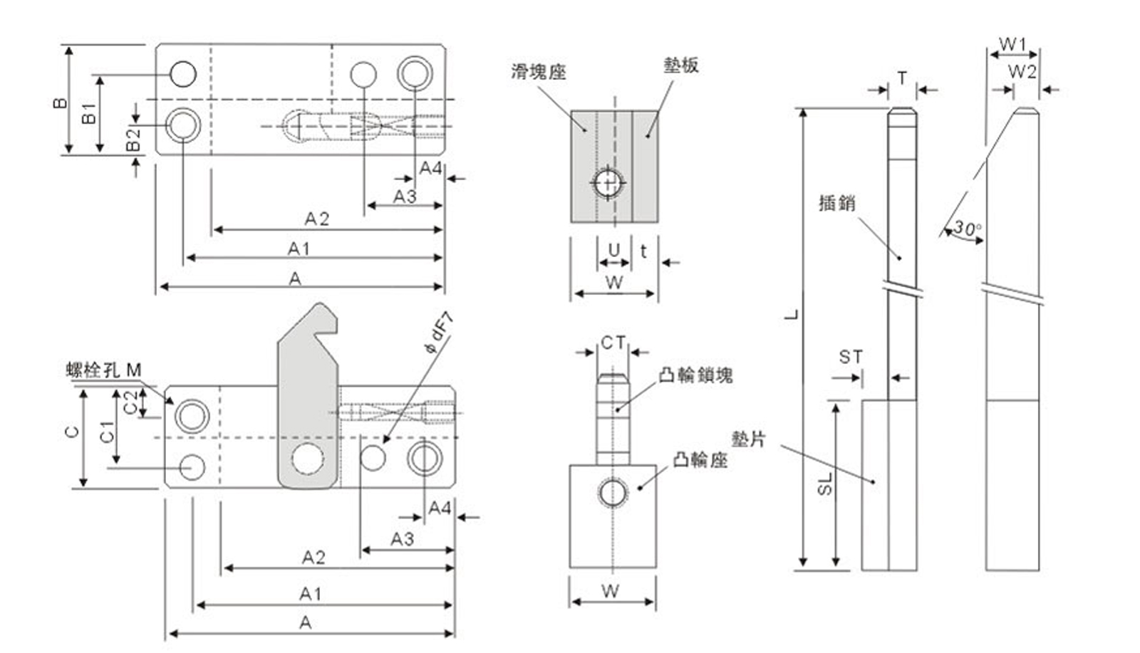 | Type | 滑塊座 凸輪座 | 墊板 | 插銷 | 墊片 | ||||||||||||||||||
