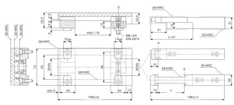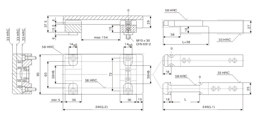 ※ Precautions: lt is required to calculate the same stroke for symmetrical installation during die processing. Otherwise, it will cause unbalance force of single set of modelocking buckle and breakage of component.