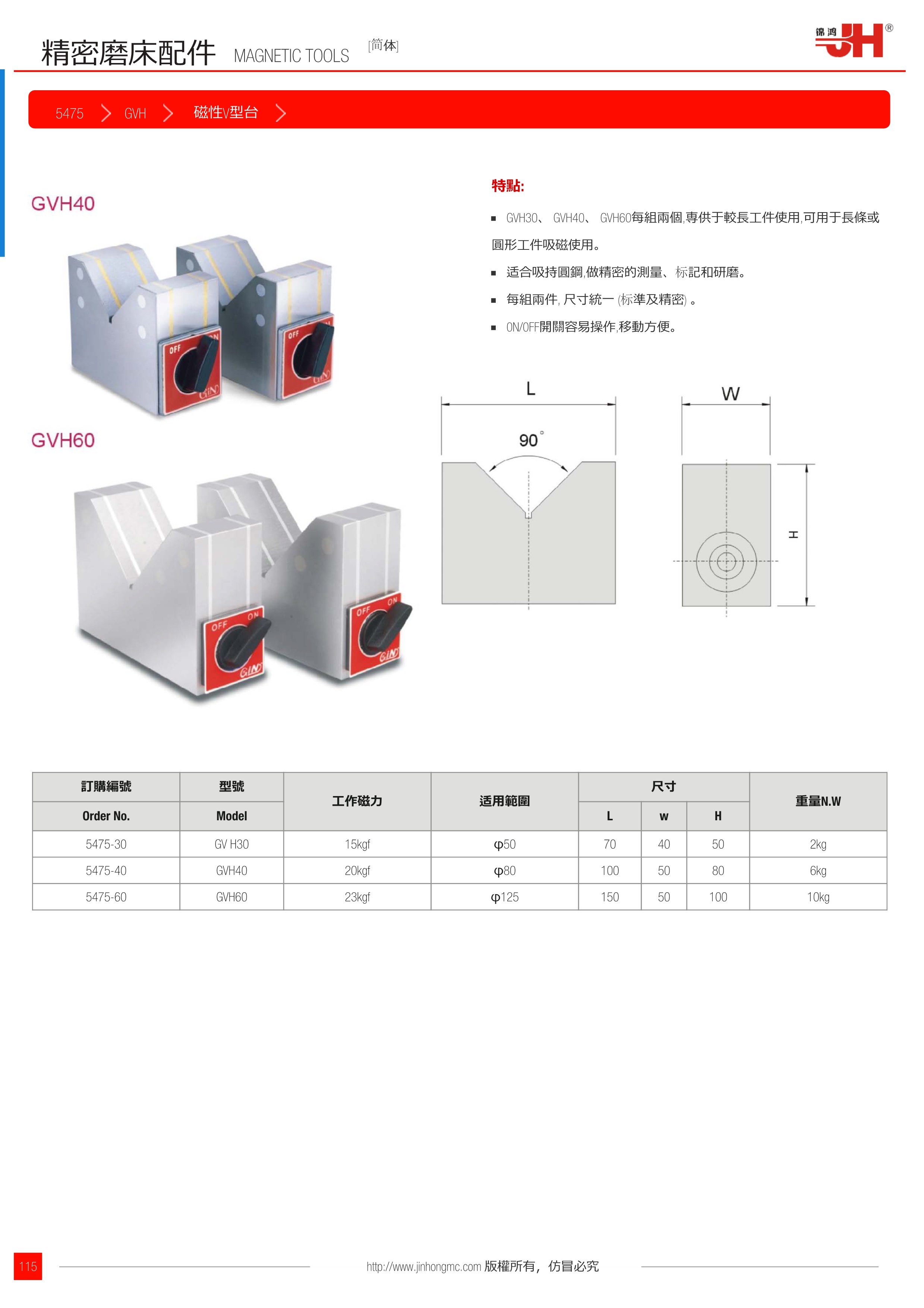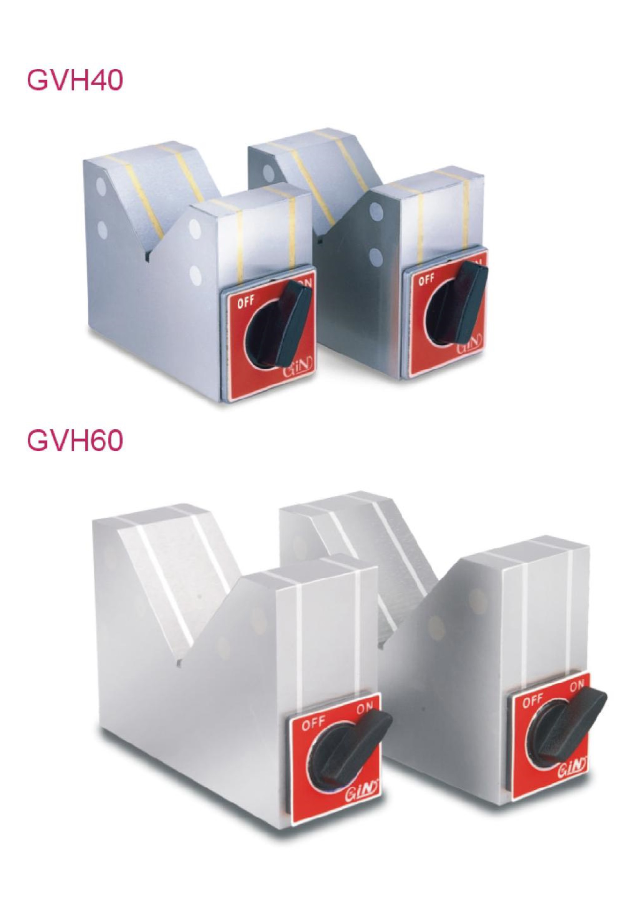•  GVH30、 GVH40、 GVH60每組兩個,専供于較長工件使用,可用于長條或圓形工件吸磁使用。