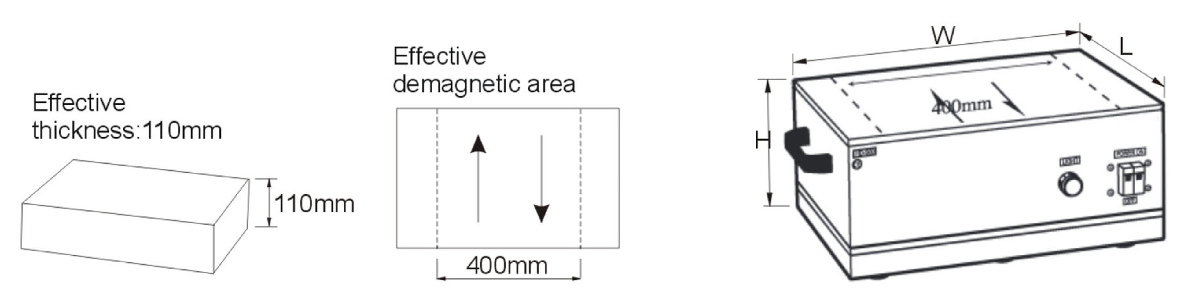 脫磁有效範圍400mm(16”),脫磁工件有效厚度110mm