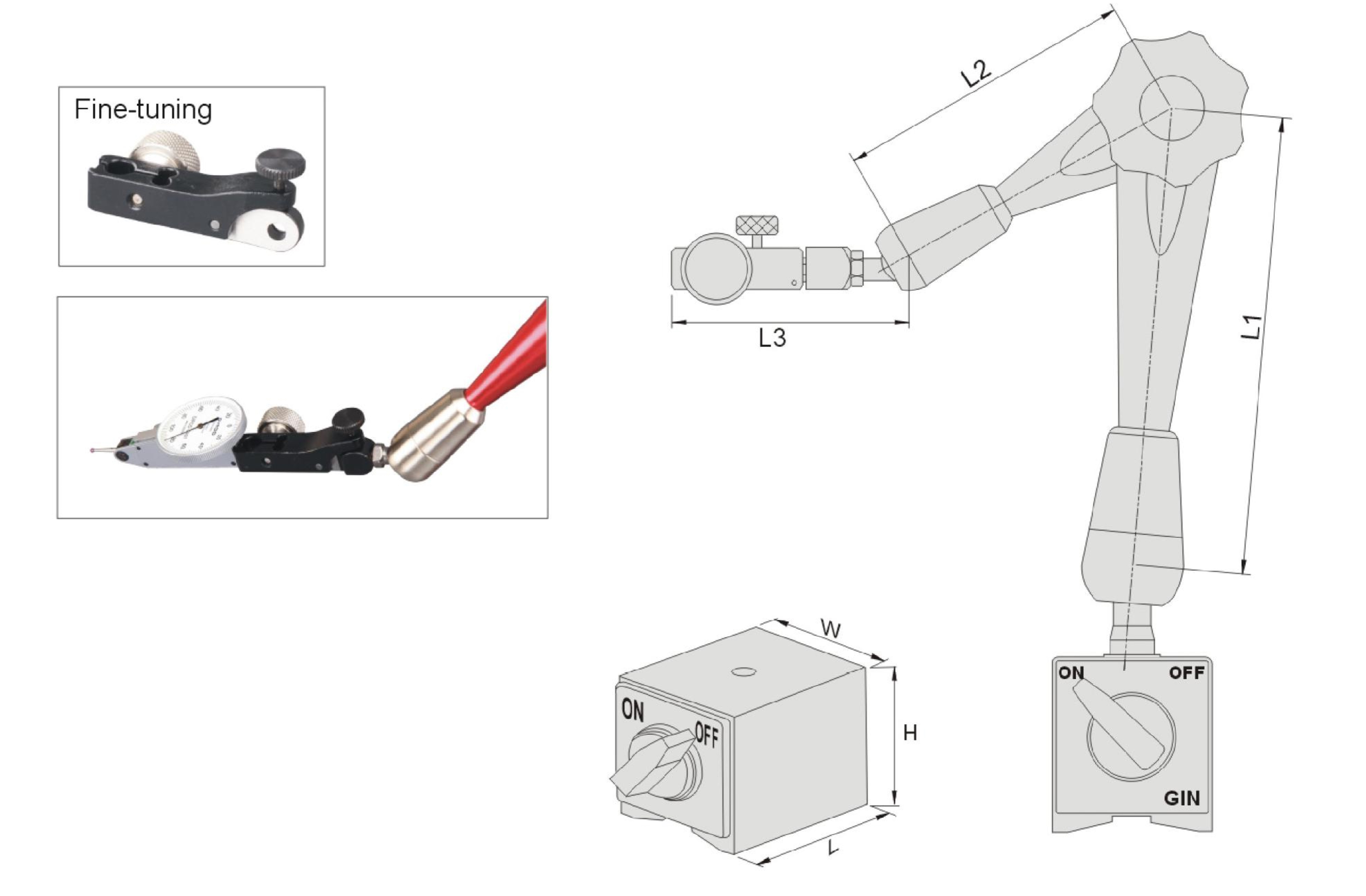 | 訂購編號 | 型號 | 杠桿規格 | L3 | 磁性座規格 | 吸力(N) | 重量 | |||||