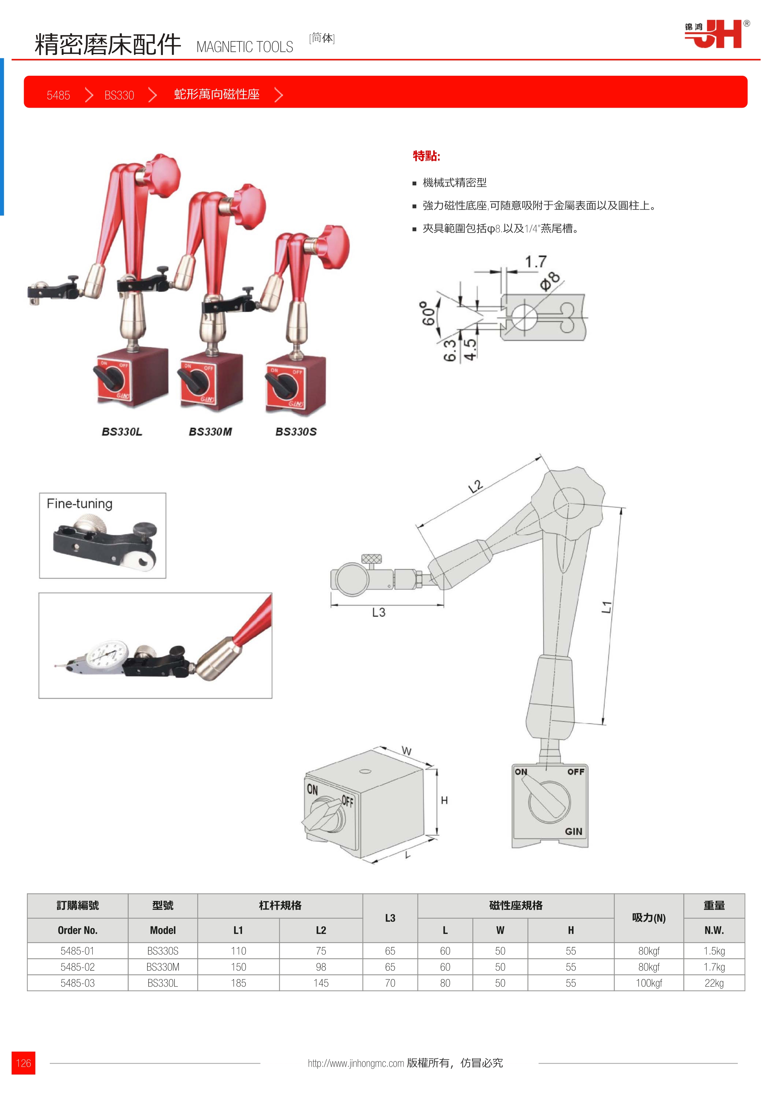 | 5485-01 | BS330S | 110 | 75 | 65 | 60 | 50 | 55 | 80kgf | 1.5kg | ||