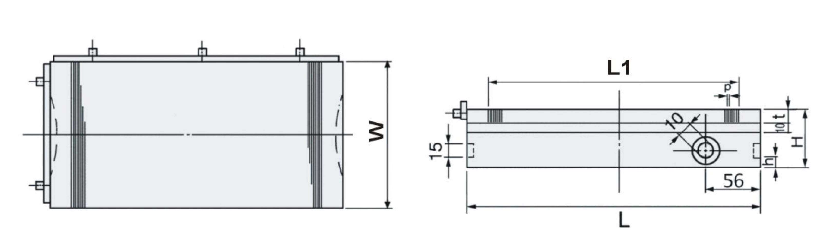 | Order No. | Model | w | L | L1 | t | p | H | N.W. | |