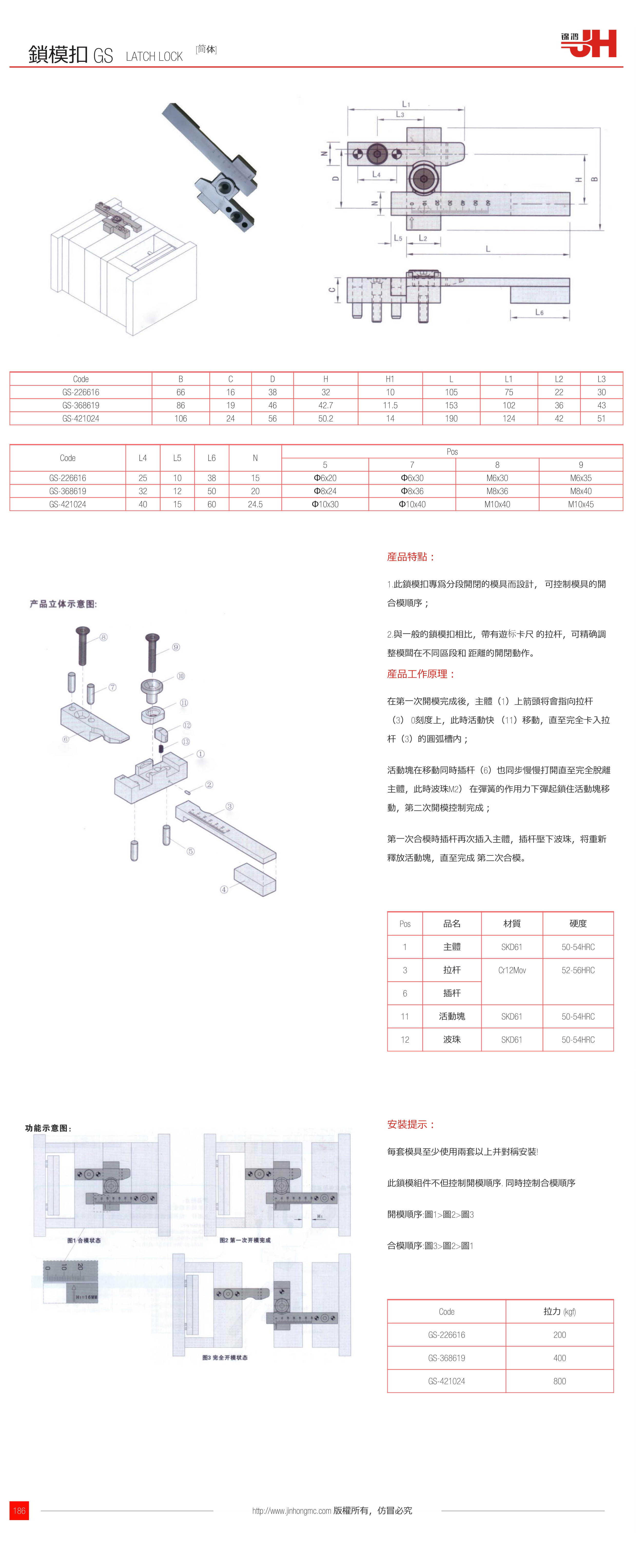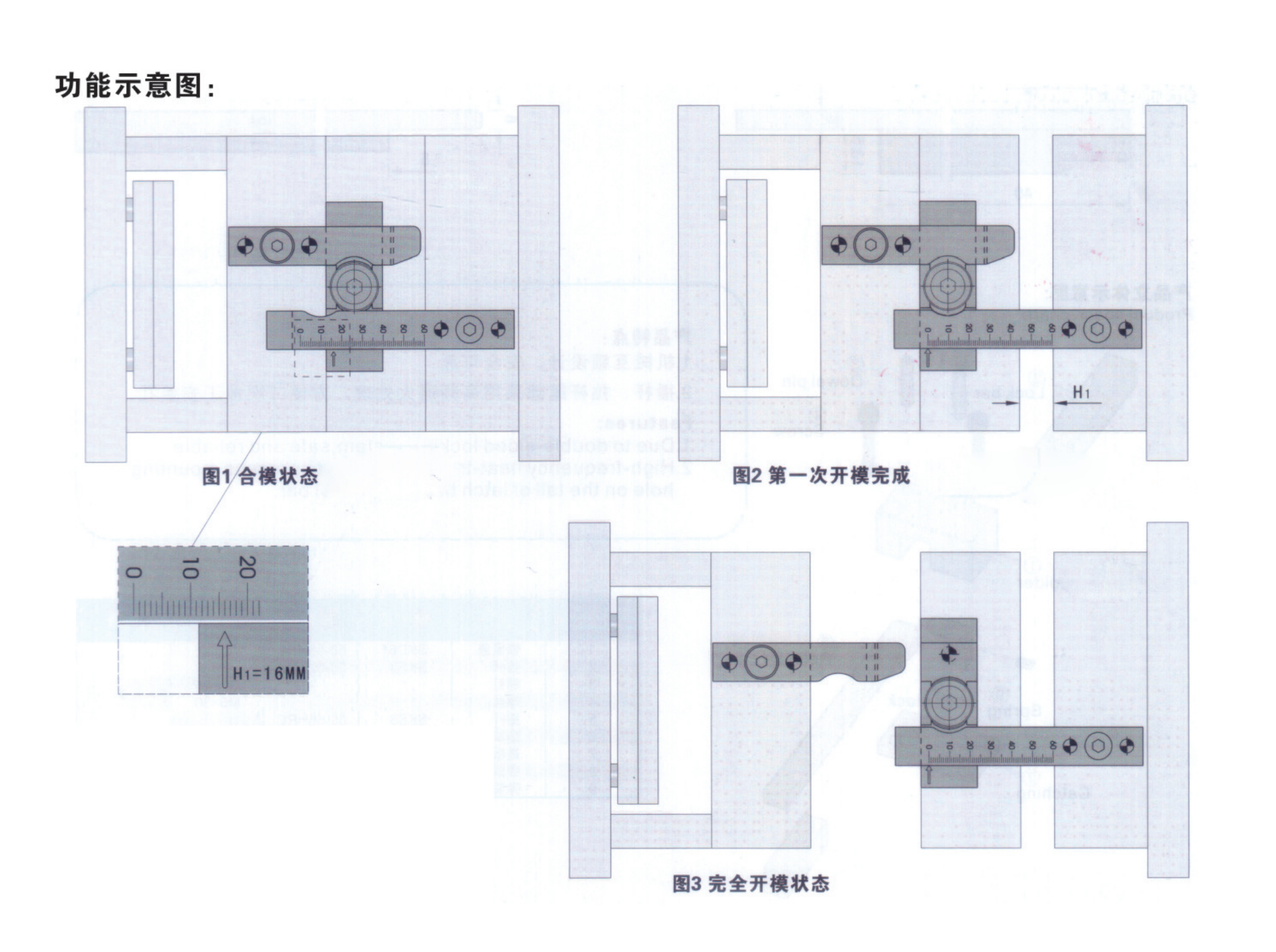 1.此鎖模扣專為分段開閉的模具而設計, 可控制模具的開合模順序;