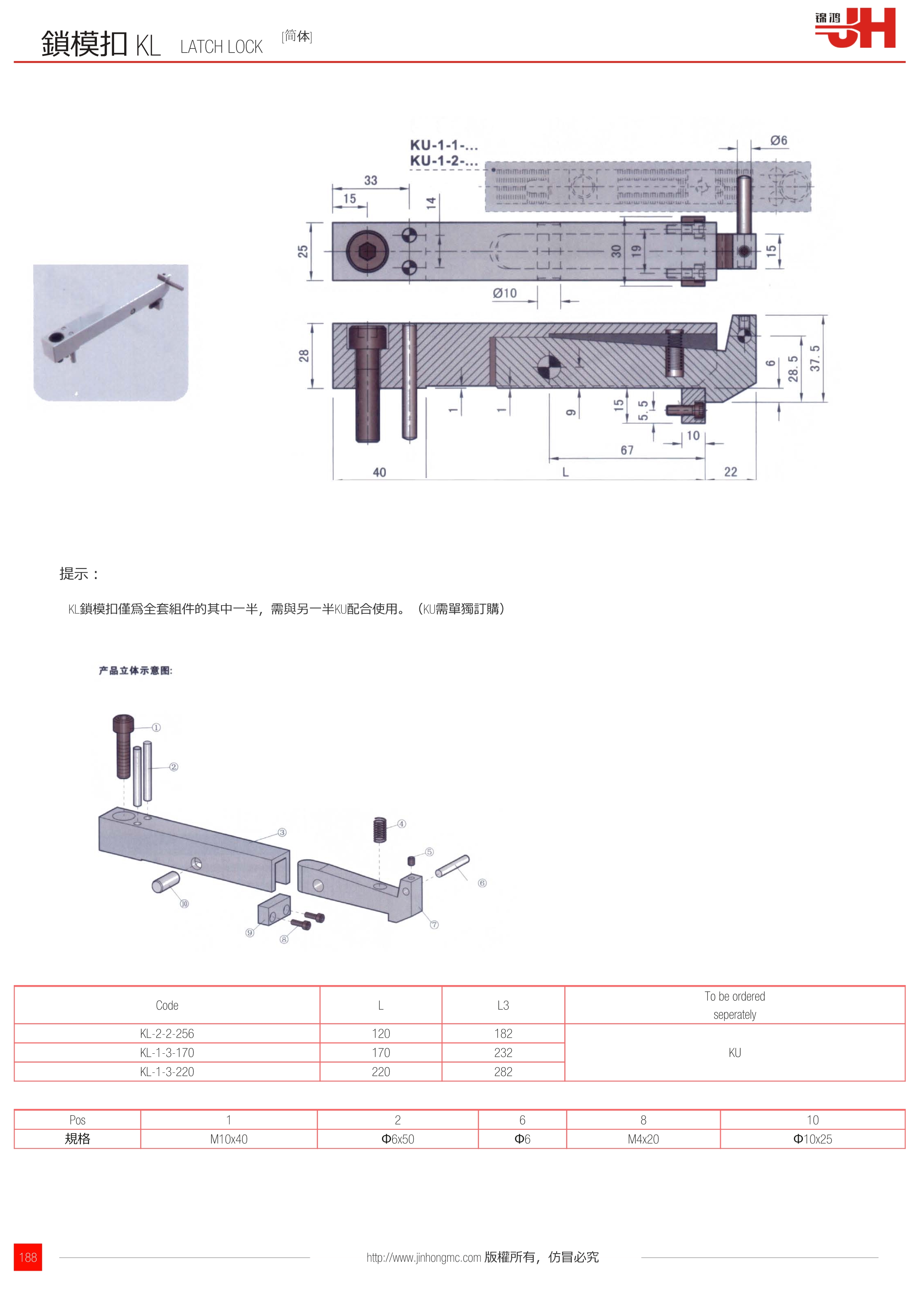 KL鎖模扣僅為全套組件的其中一半,需與另一半KU配合使用。(KU需單獨訂購)