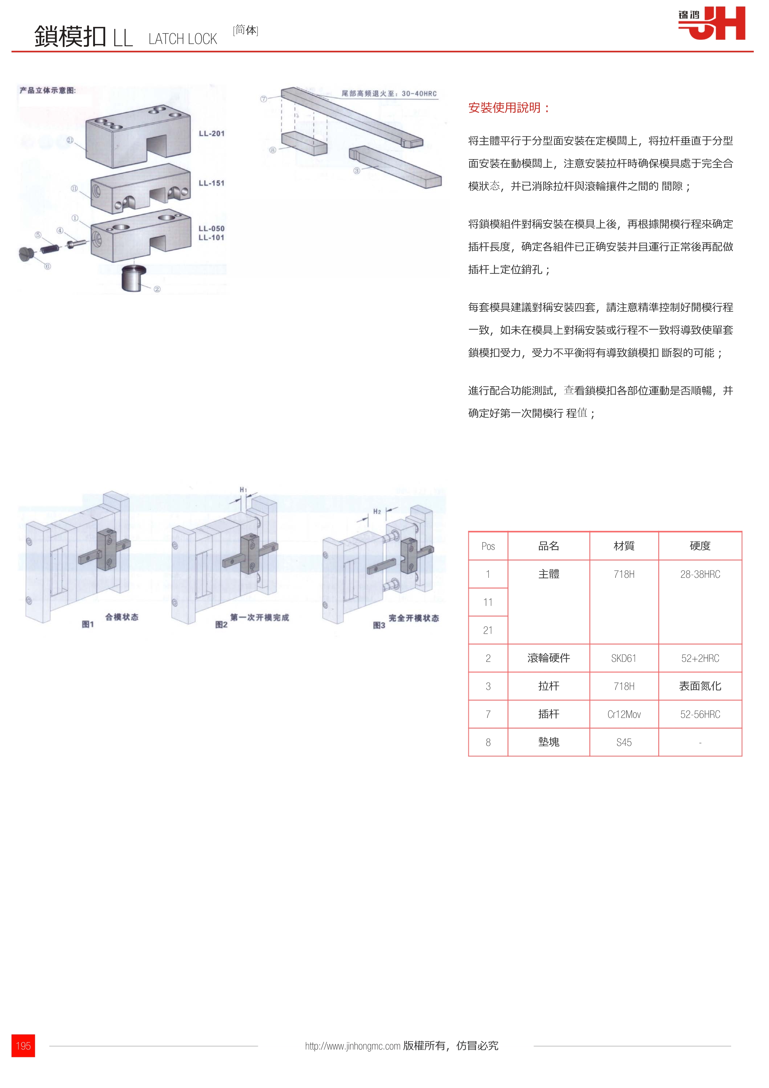 • 每套模具建議對稱安裝四套,請注意精準控制好開模行程一致,如未在模具上對稱安裝或行程不一致將導致使單套鎖??凼芰?,受力不平衡將有導致鎖??蹟嗔训目赡埽?/p>