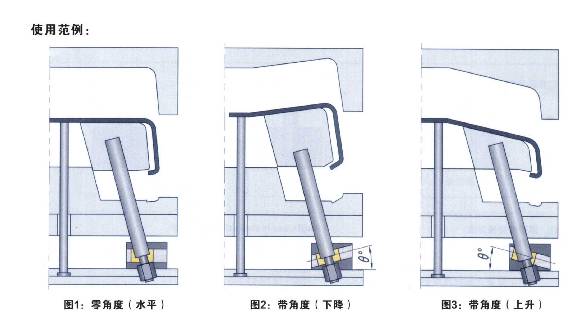 3.旋轉調整螺母確認斜頂桿位置;(不同型號可調節高度略有不同, 具體請參考各型號說明)