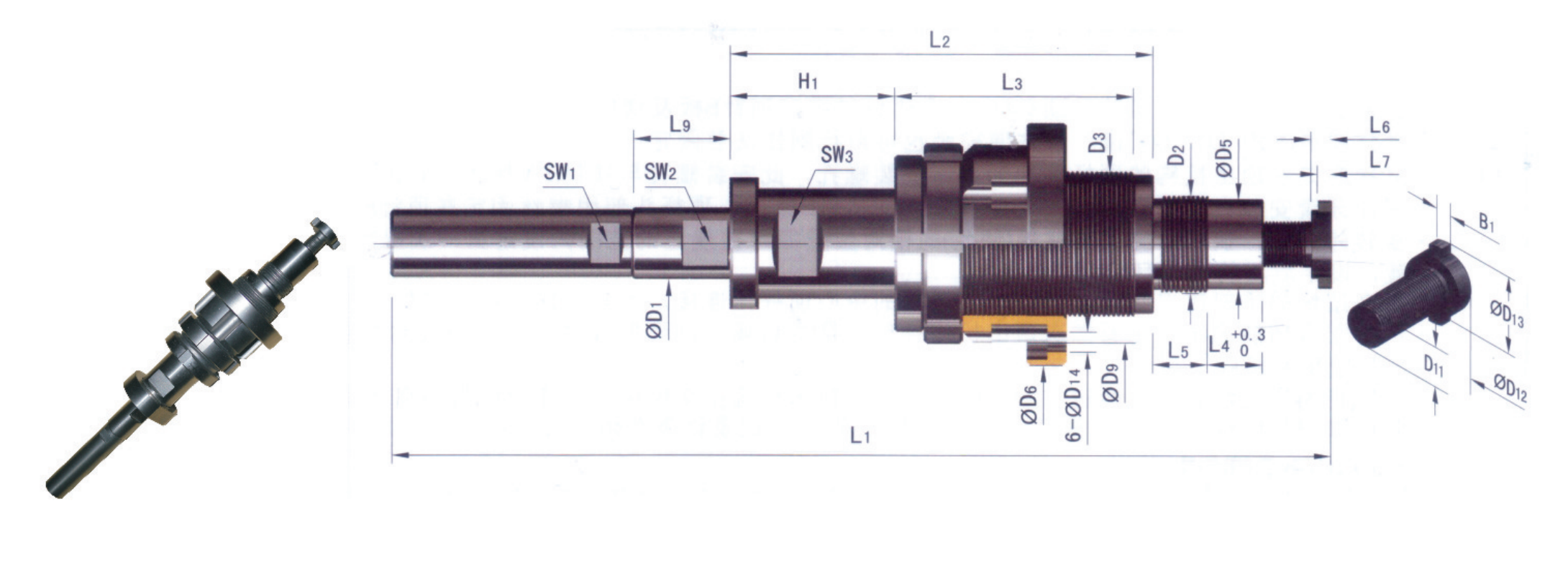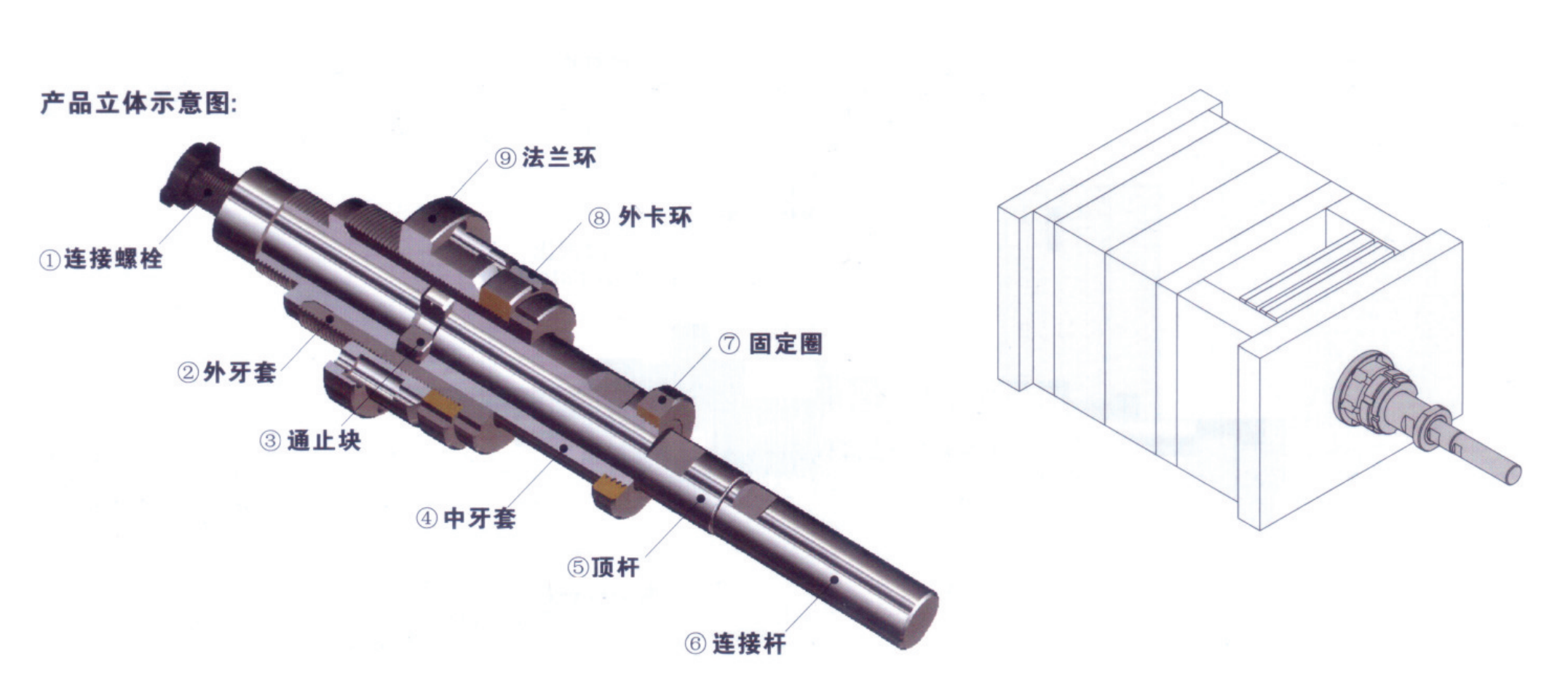 旋轉外牙套,調節外牙套與法蘭的相對位置即可在規定的范圍內設定第一次頂出行程 “S1”的位置,設定后再將法蘭鎖緊;