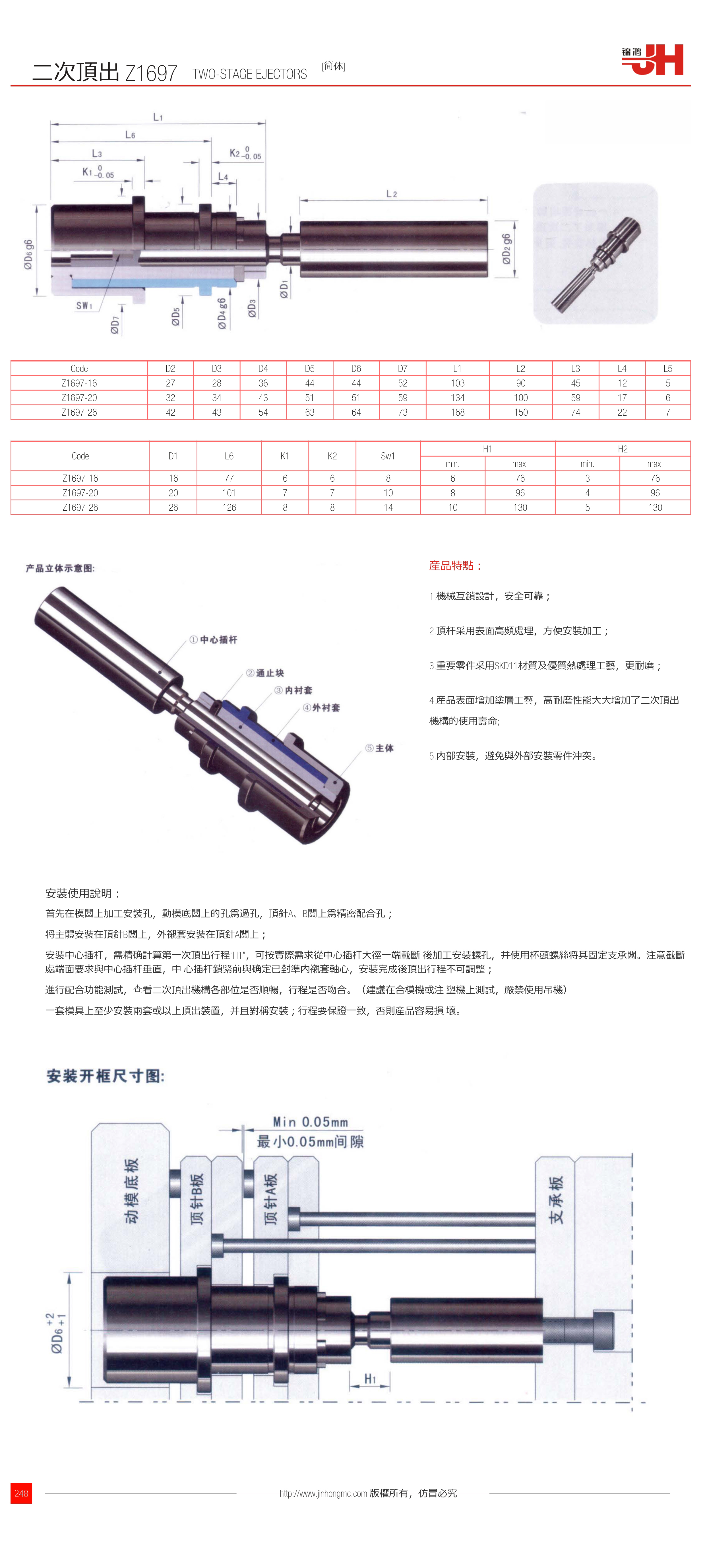 • 進行配合功能測試,查看二次頂出機構各部位是否順暢,行程是否吻合。(建議在合模機或注 塑機上測試,嚴禁使用吊機)