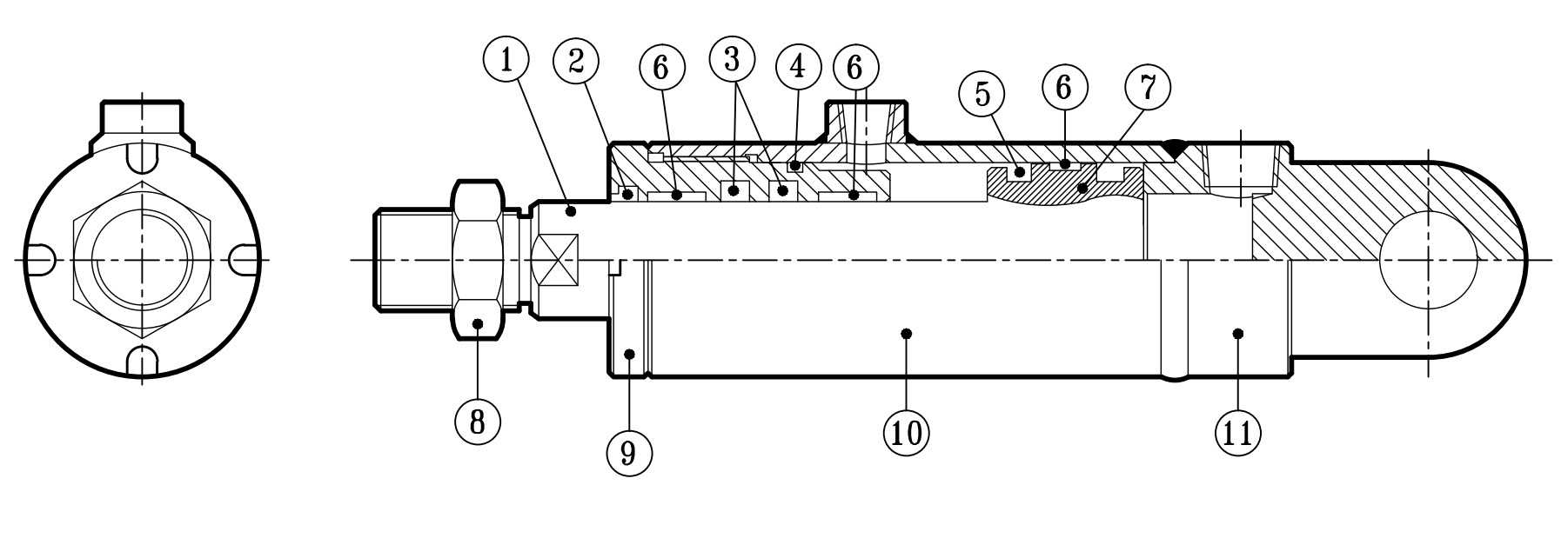 3刮油環 Rod packiog17活塞本體 Piston111后蓋 End cover1