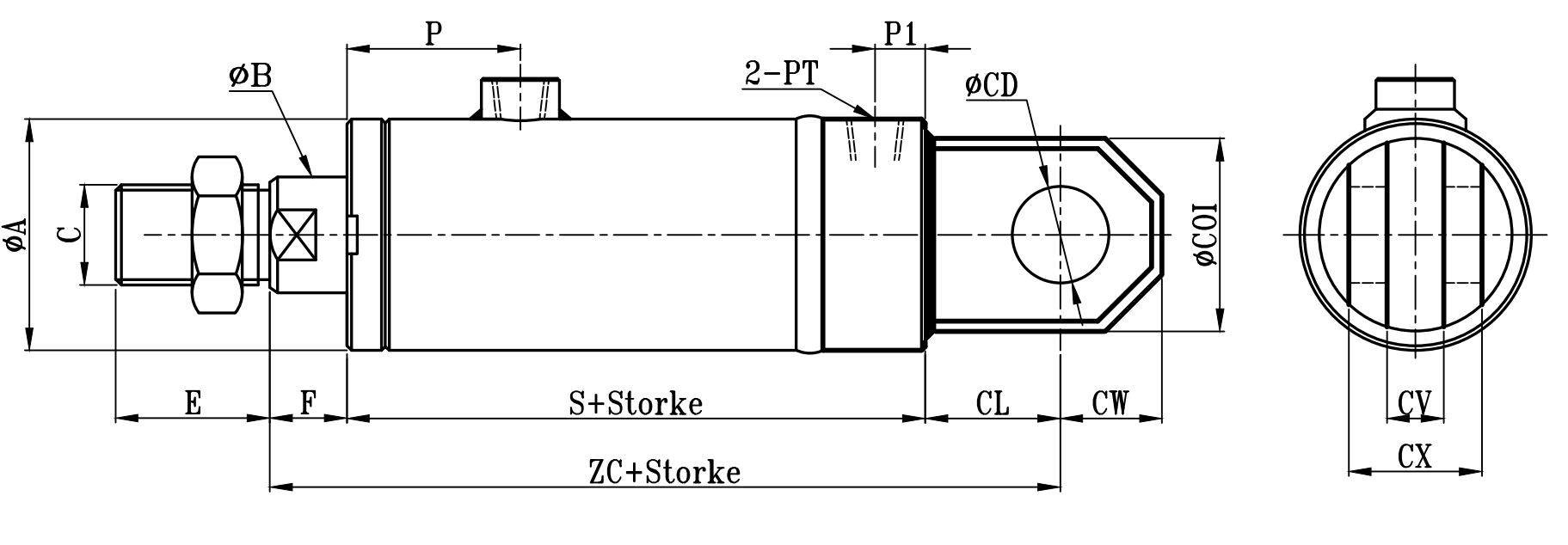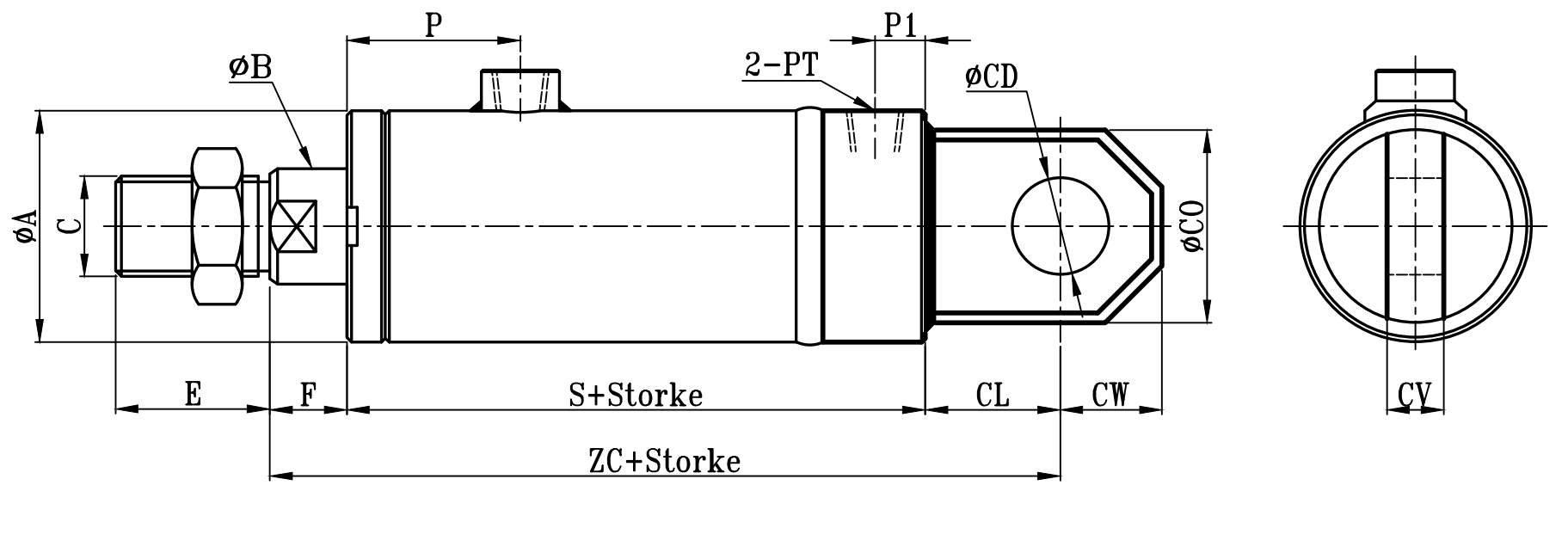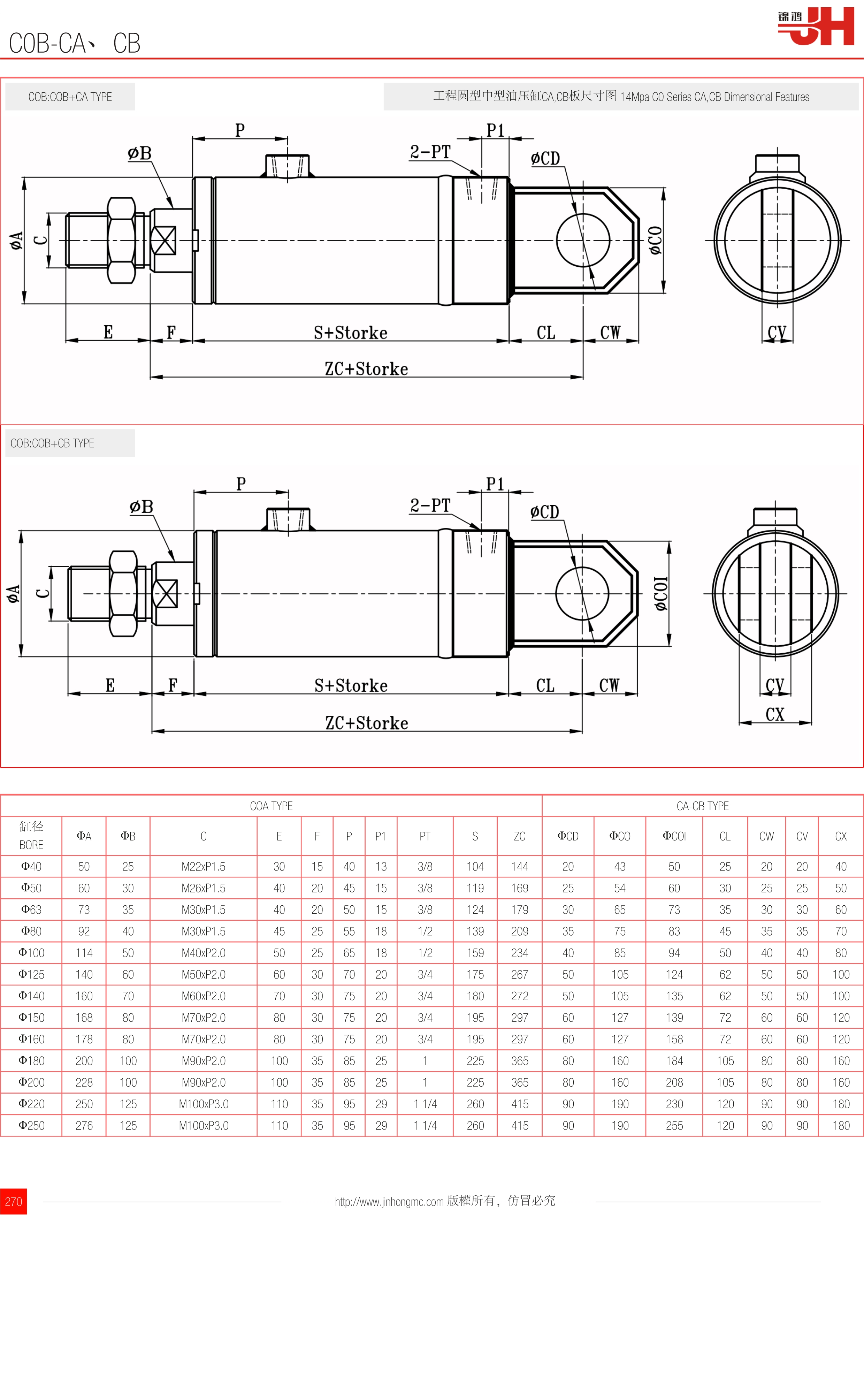 工程圓型中型油壓缸CA,CB板尺寸圖 14Mpa C0 Series CA,CB Dimensional Features
