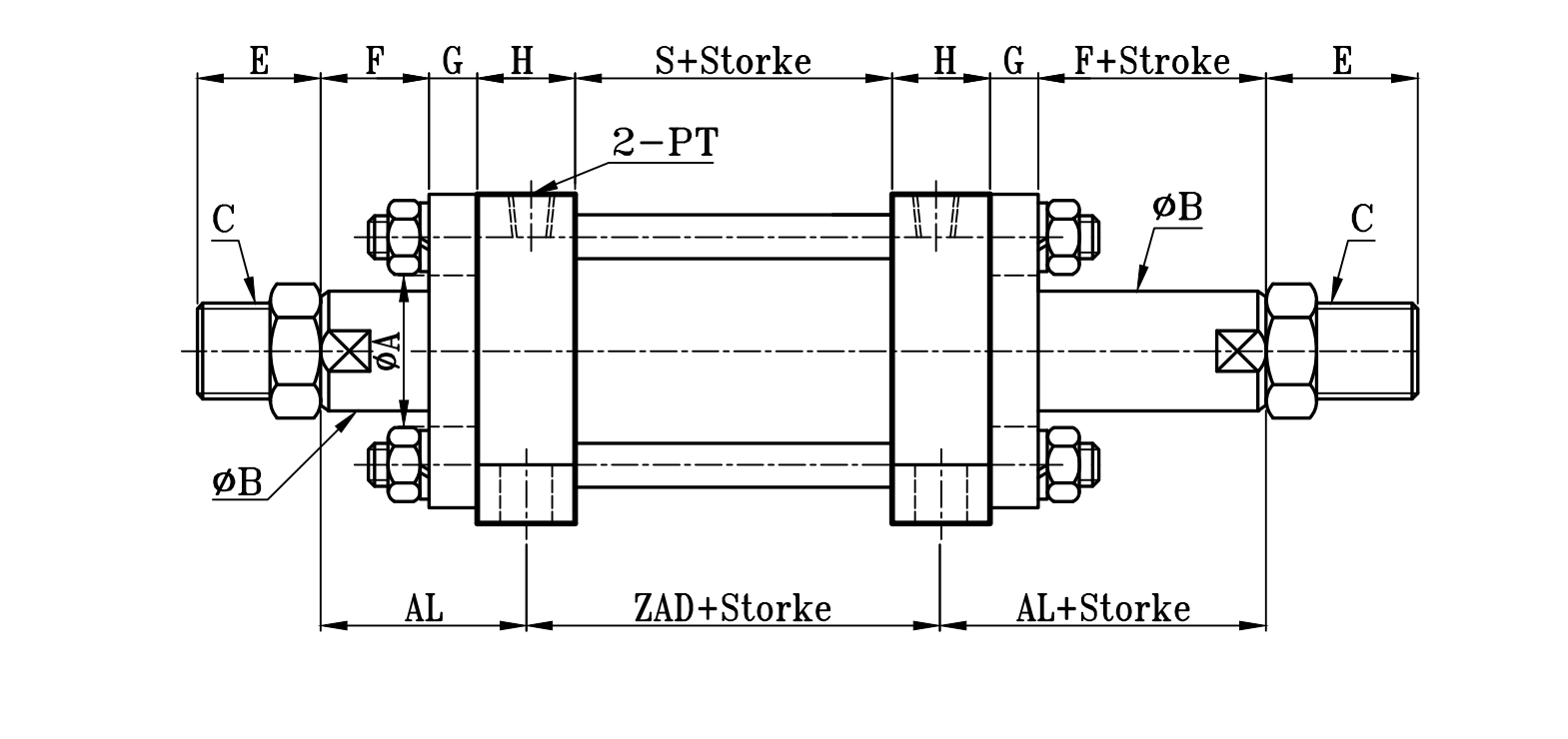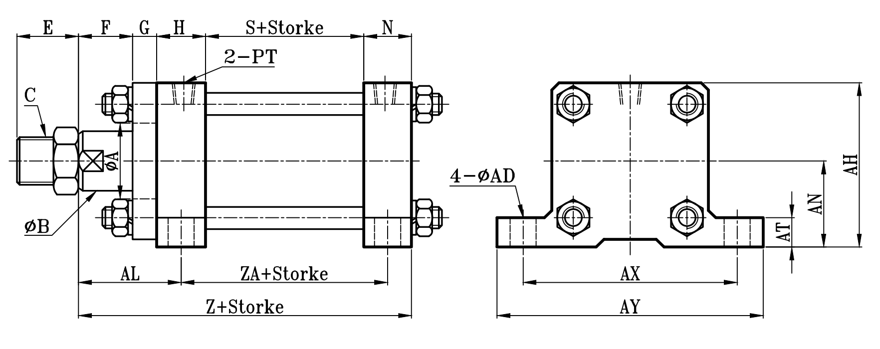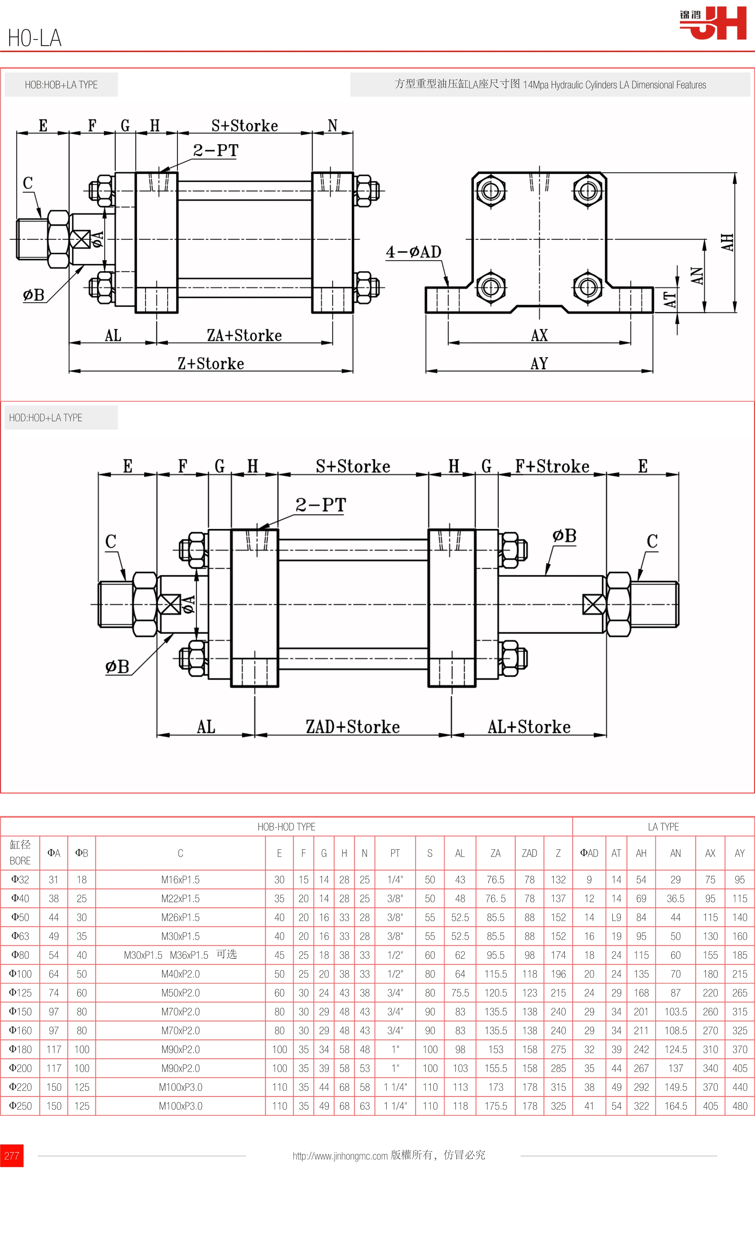 方型重型油壓缸LA座尺寸圖 14Mpa Hydraulic Cylinders LA Dimensional Features