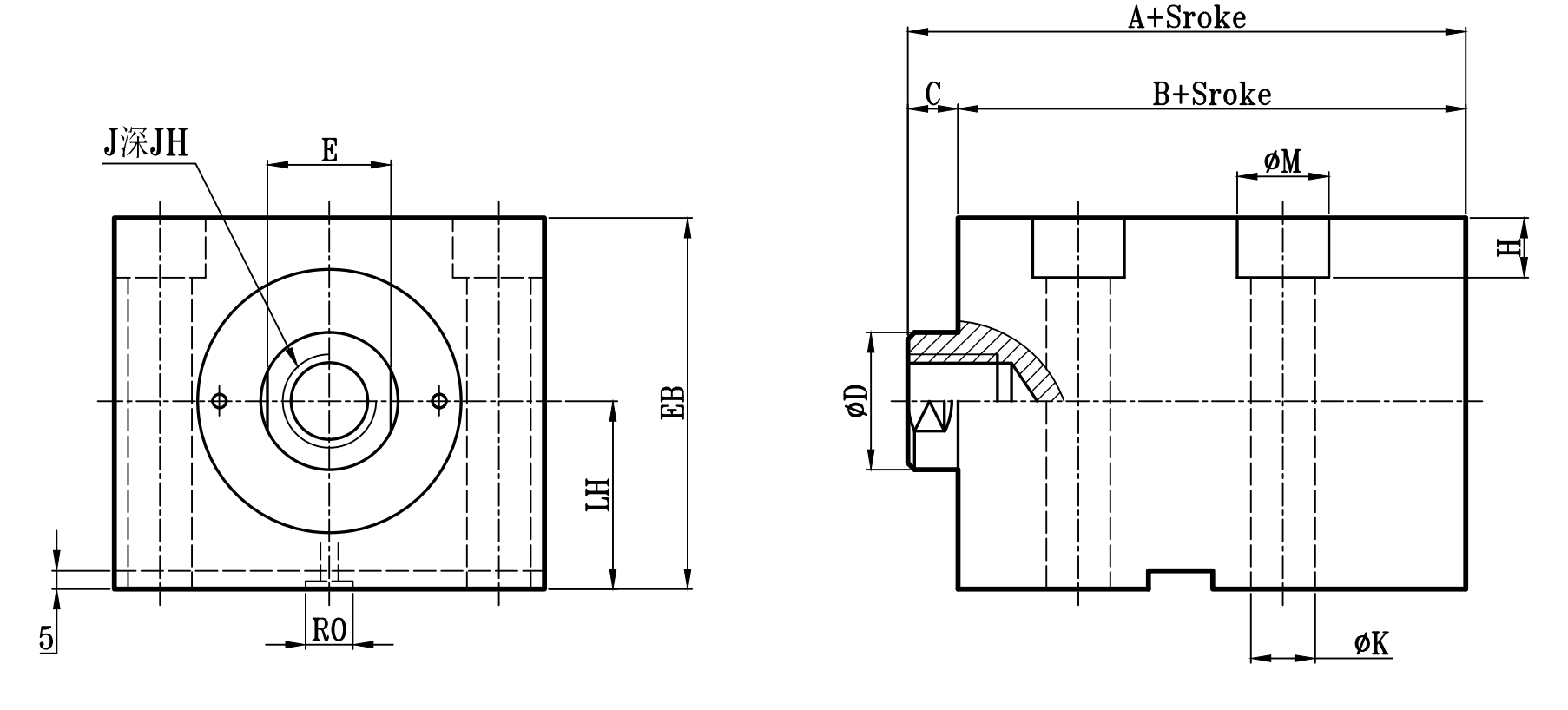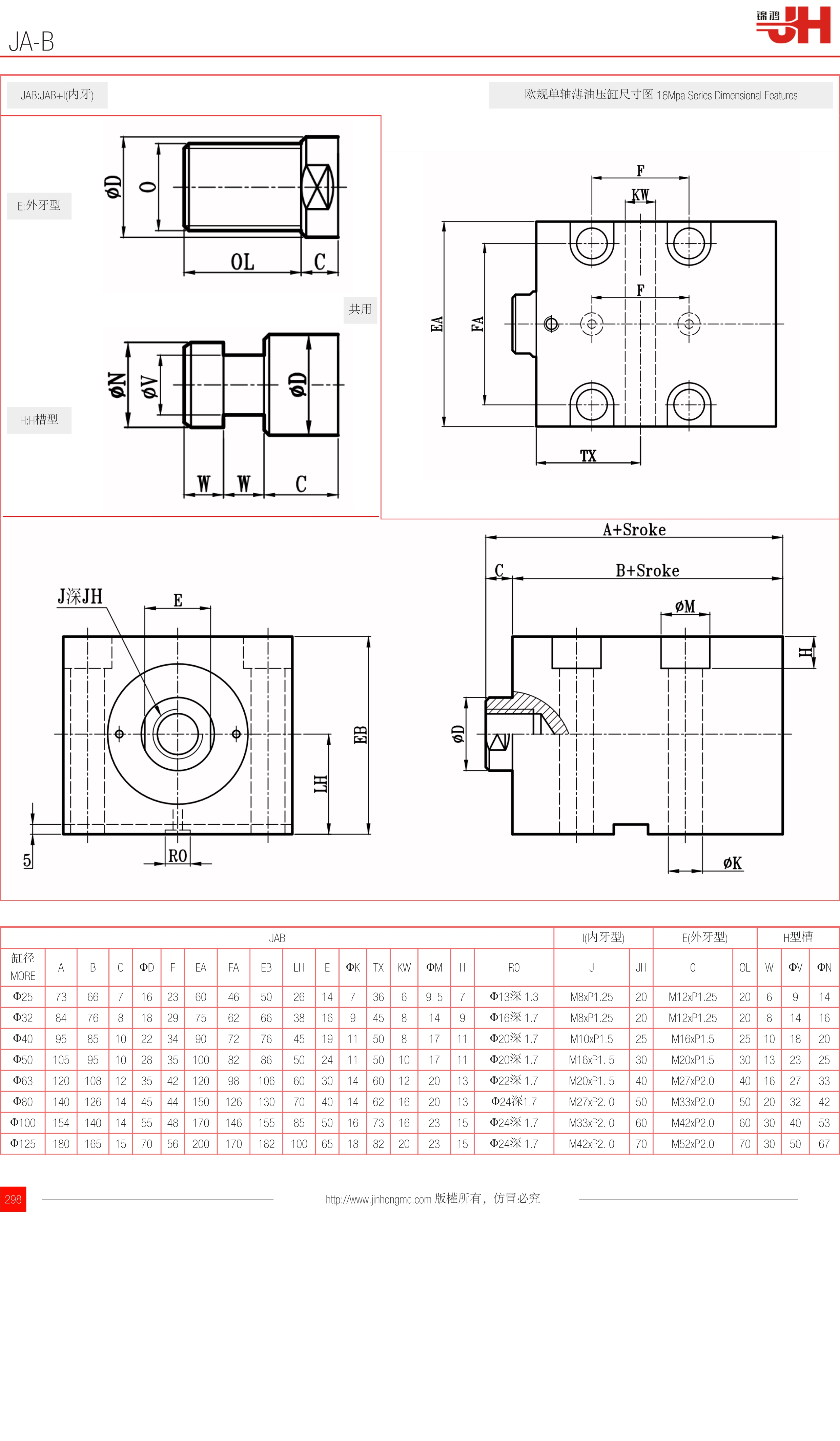歐規單軸薄油壓缸尺寸圖 16Mpa Series Dimensional Features