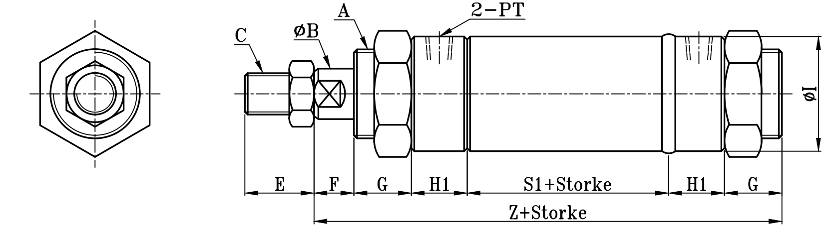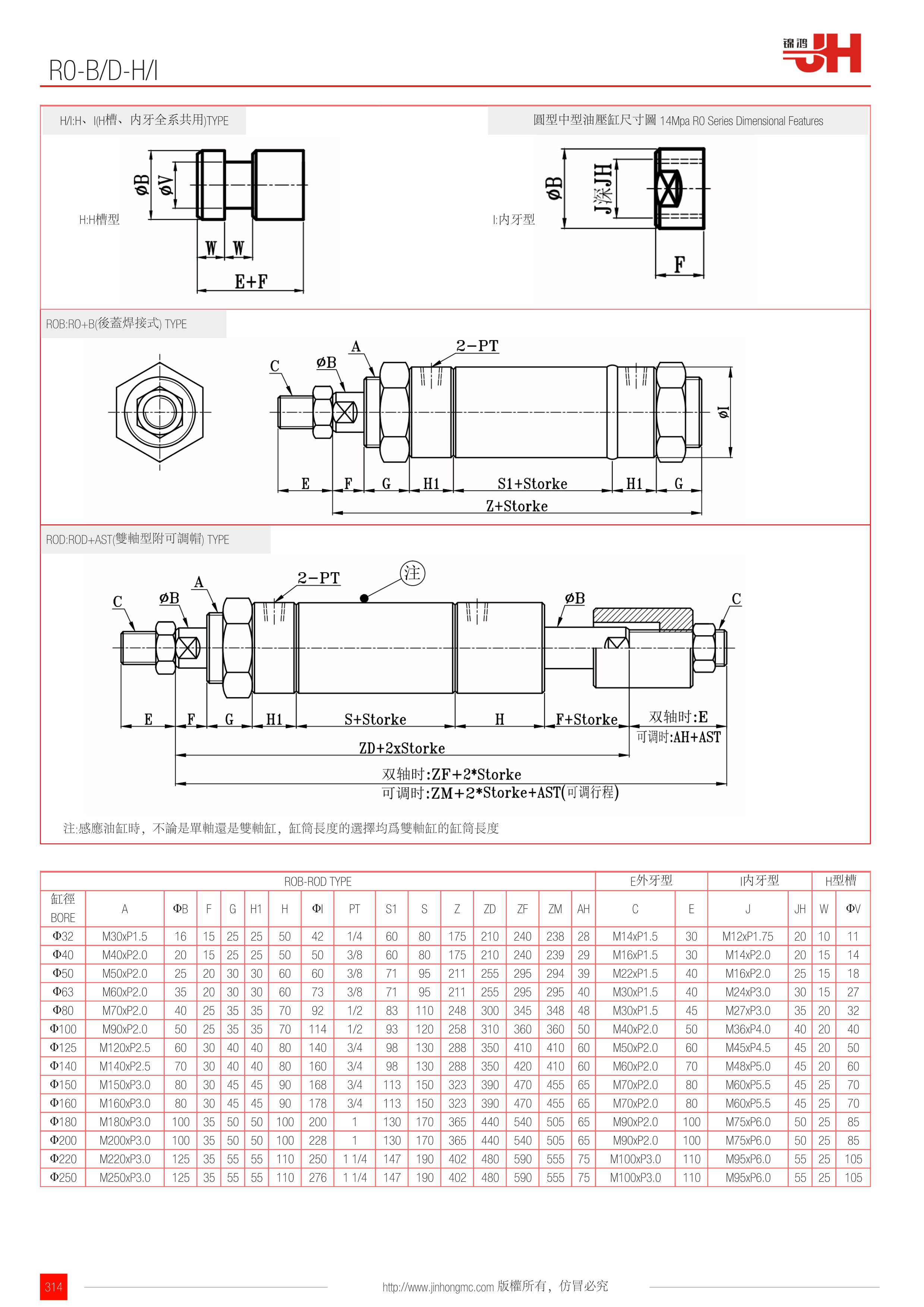 圓型中型油壓缸尺寸圖 14Mpa R0 Series Dimensional Features