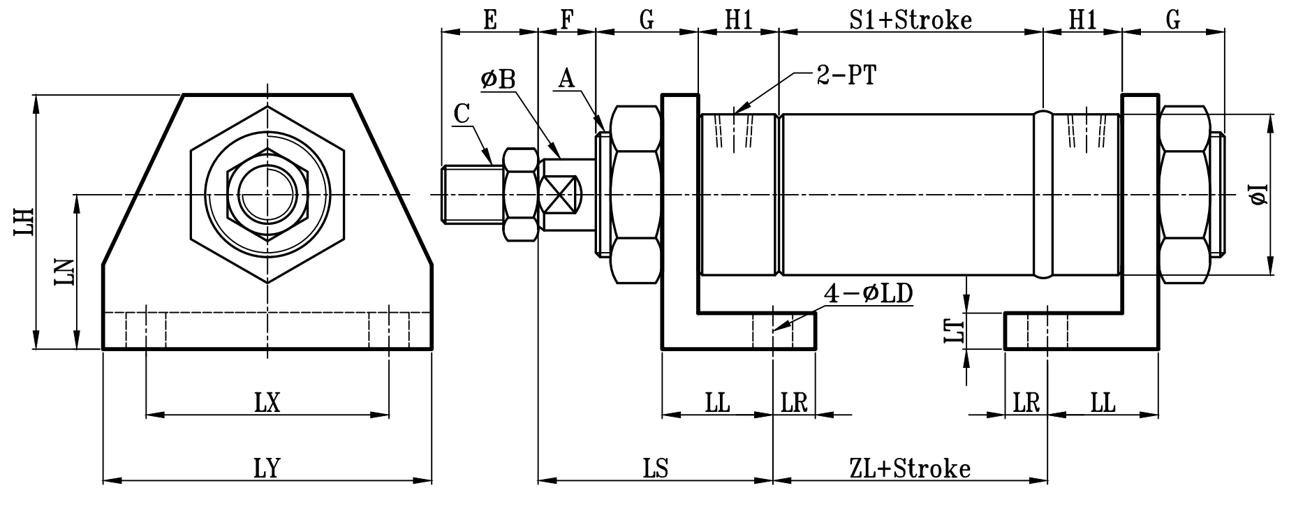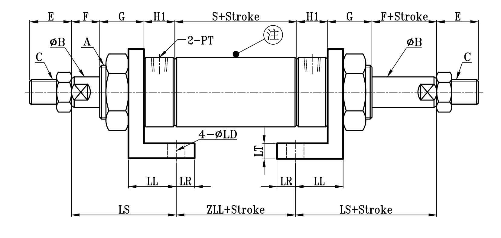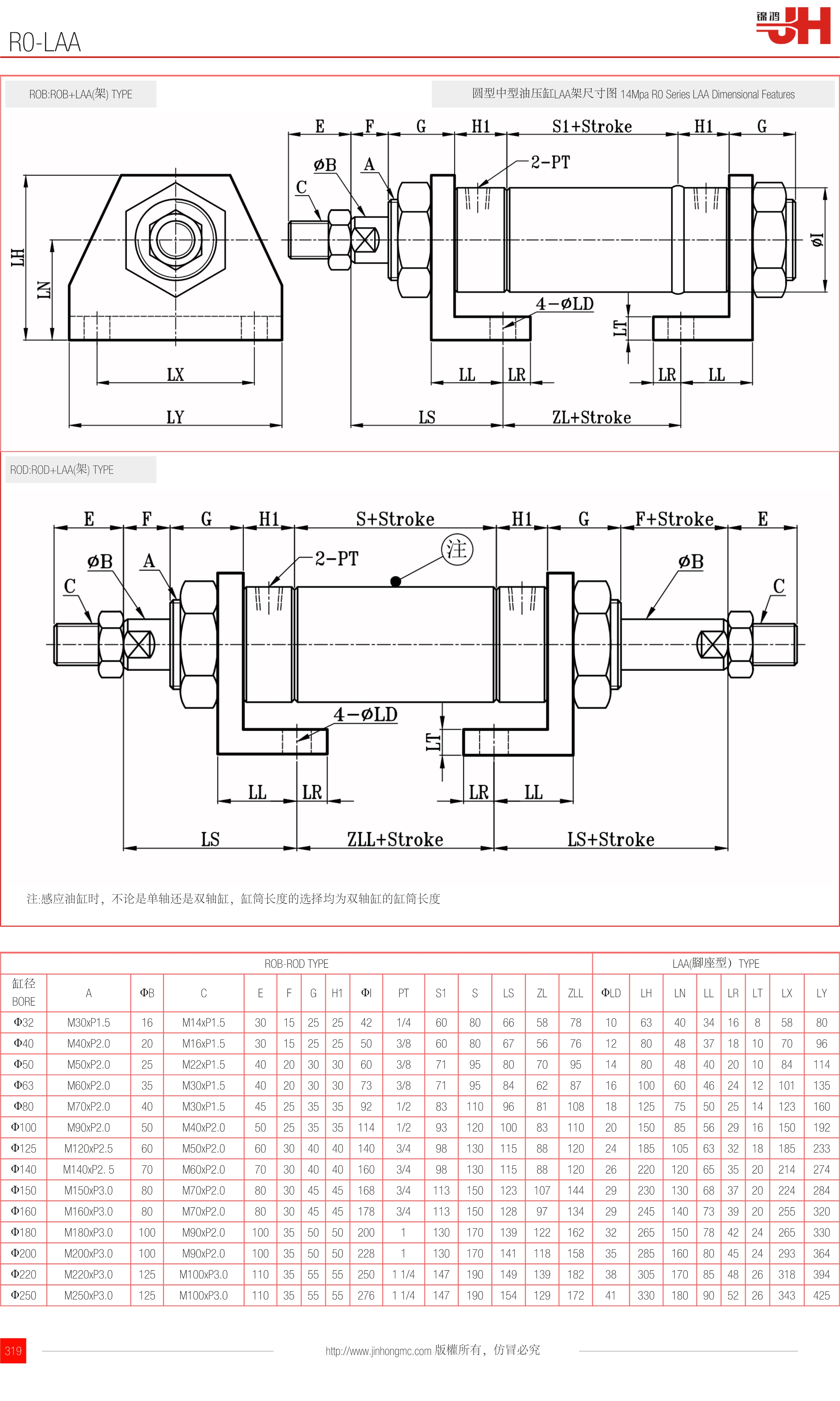 圓型中型油壓缸LAA架尺寸圖 14Mpa R0 Series LAA Dimensional Features
