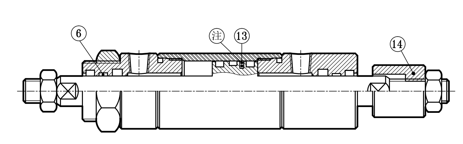 1活塞桿 Piston rod16導向環 Wearing ring111油缸本體 Cylinder tude1