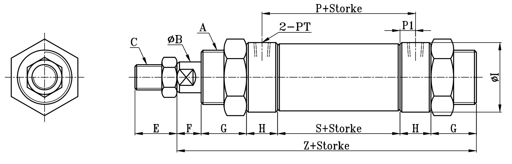 | Φ25 | M26xP1.5 | 14 | 11 | 20 | 16 | 32 | 71 | 8 | 1/8 | 55 | 138 | 149 | 174 | 174 | 22 | M12xP1.25 | 25 | M10xP1.5 | 15 | 10 | 9 |