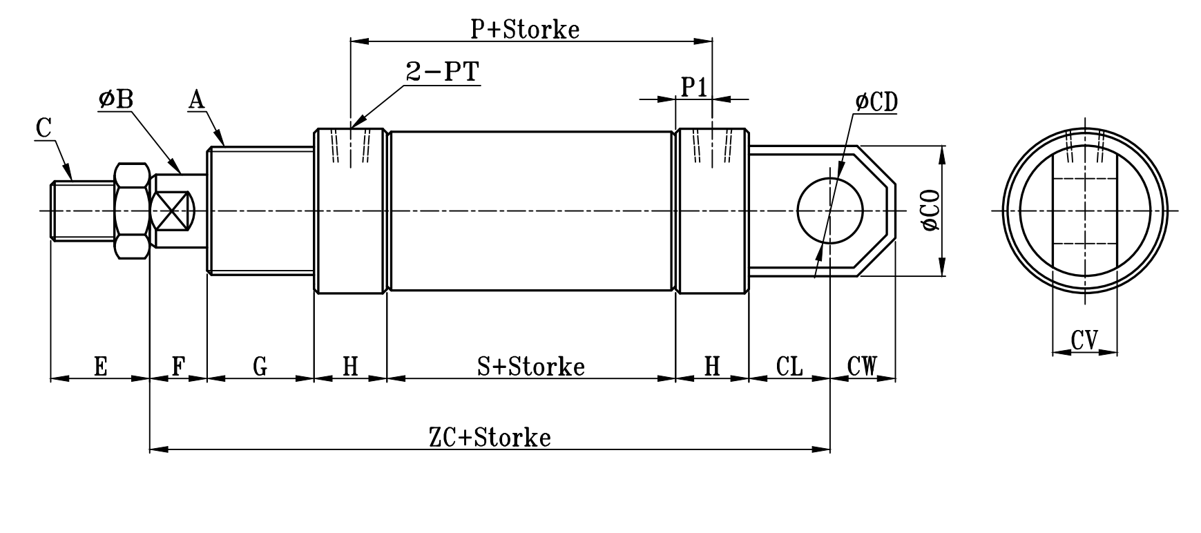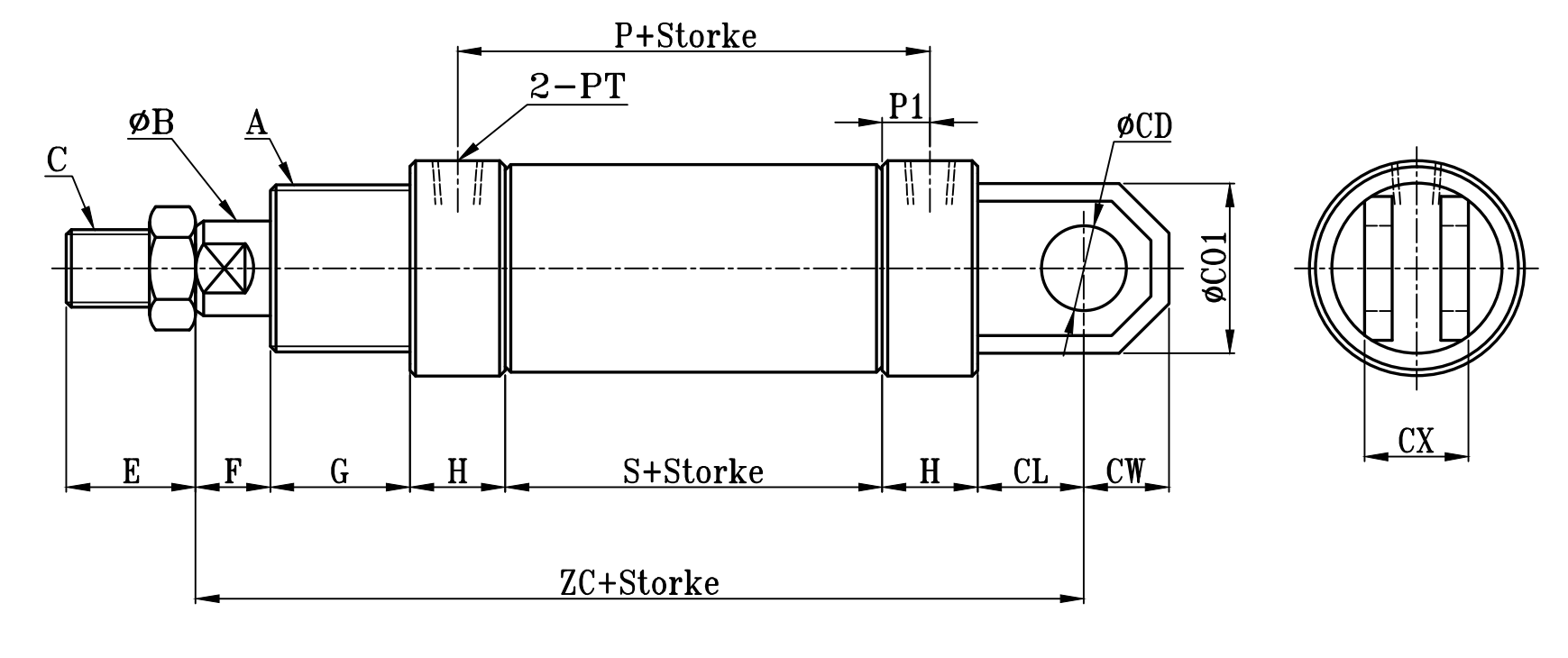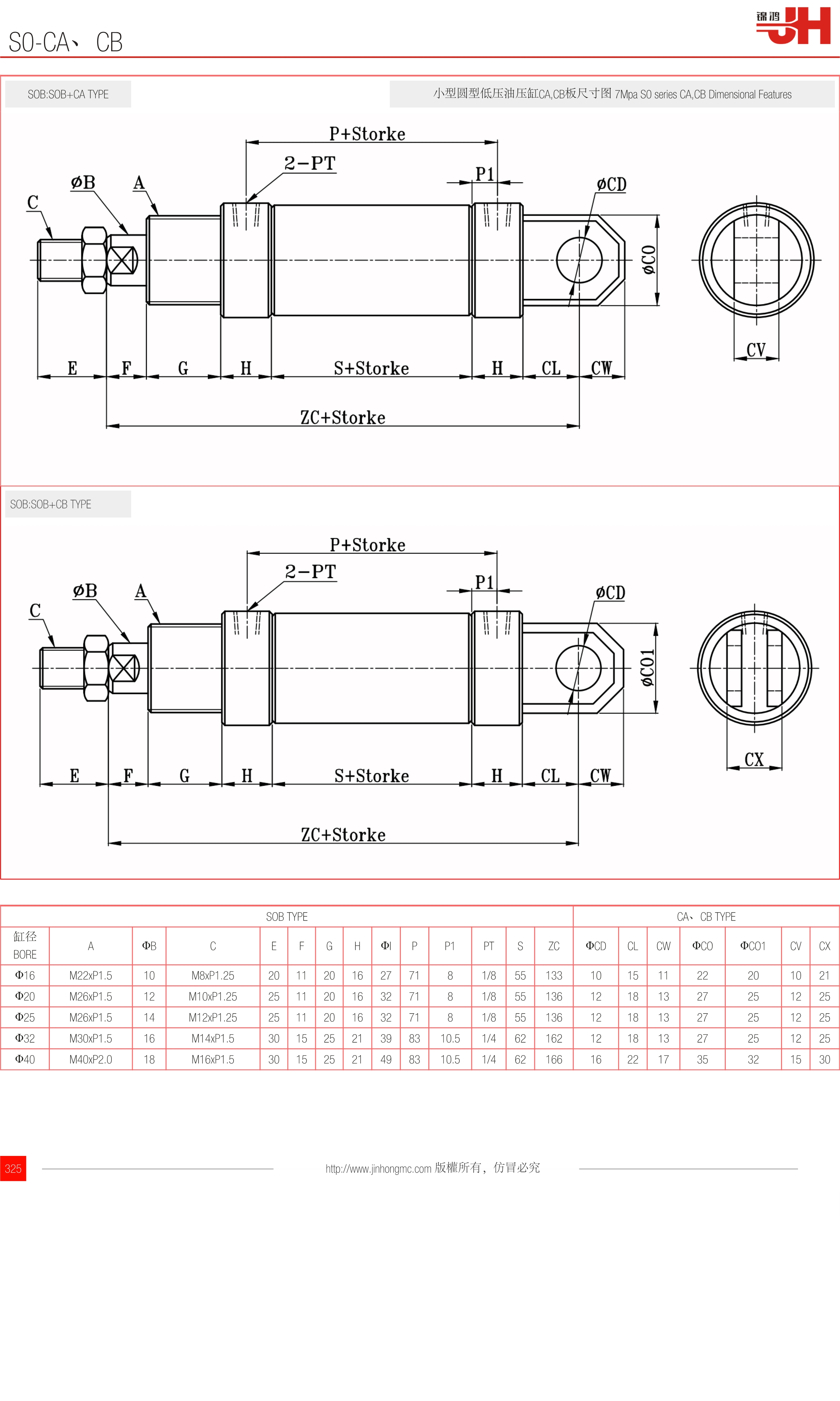 小型圓型低壓油壓缸CA,CB板尺寸圖 7Mpa S0 series CA,CB Dimensional Features