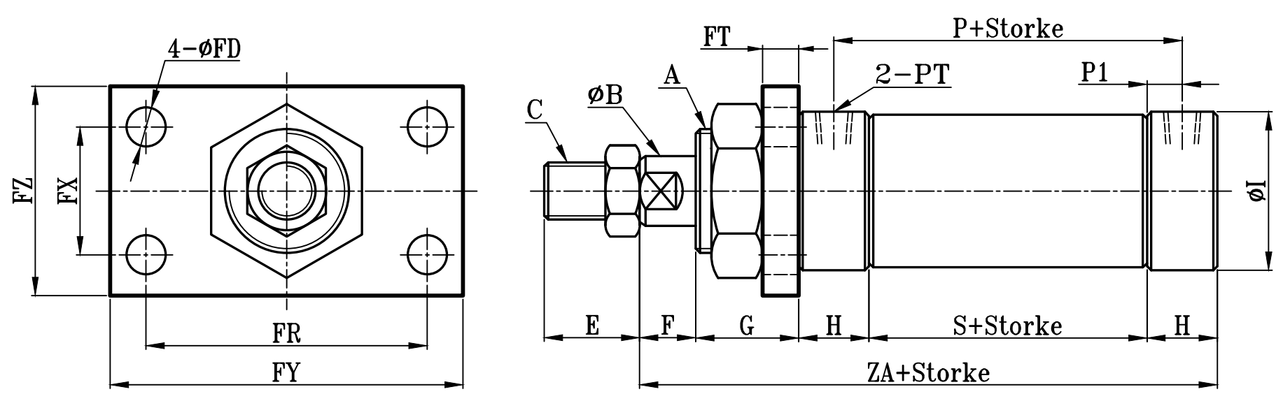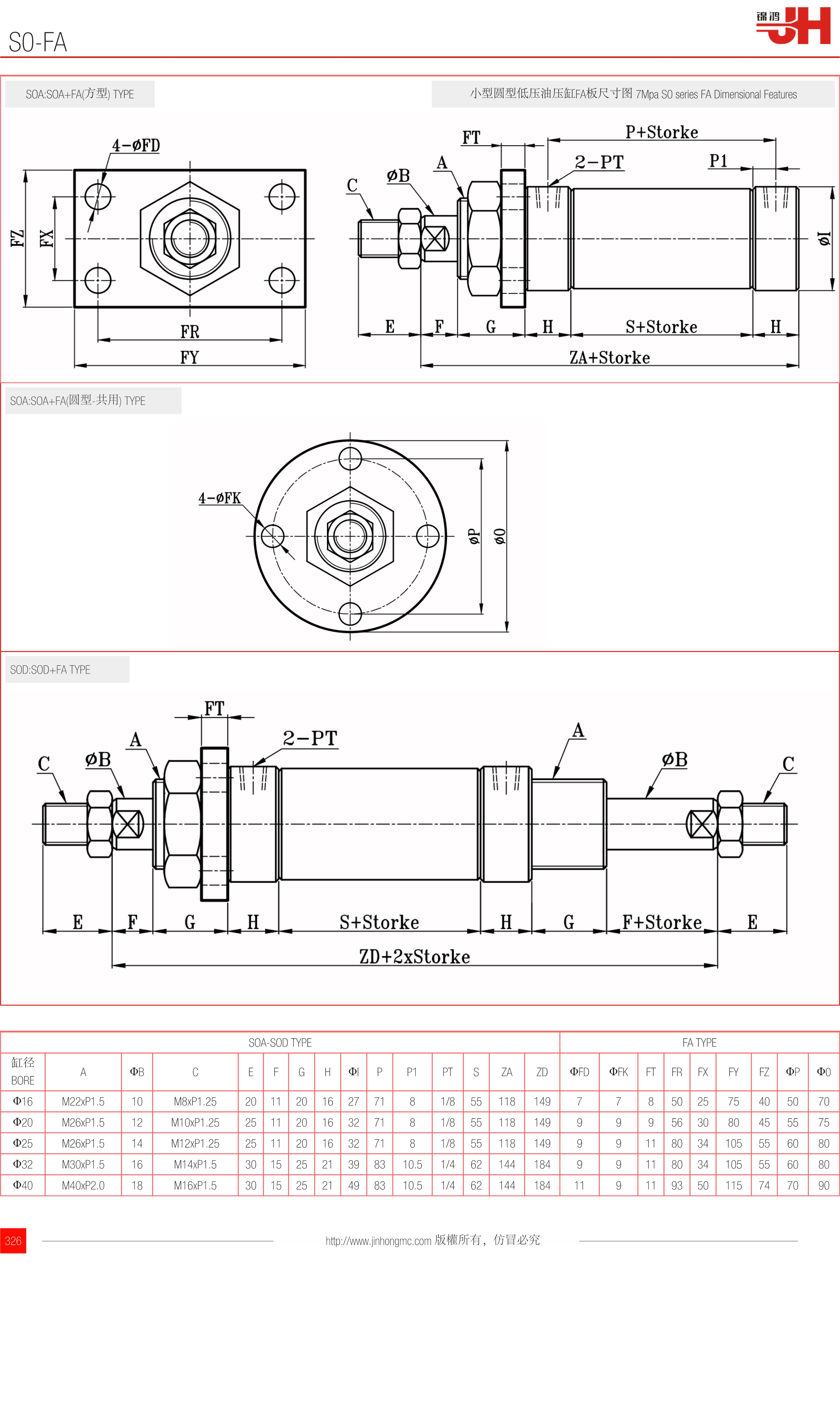 小型圓型低壓油壓缸FA板尺寸圖 7Mpa S0 series FA Dimensional Features