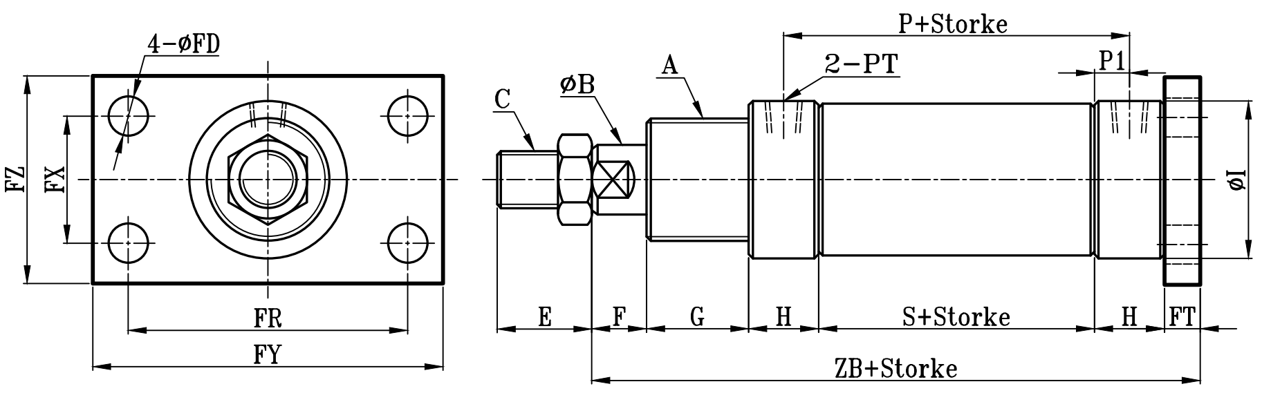 小型圓型低壓油壓缸FB板尺寸圖 7Mpa S0 series FB Dimensional Features