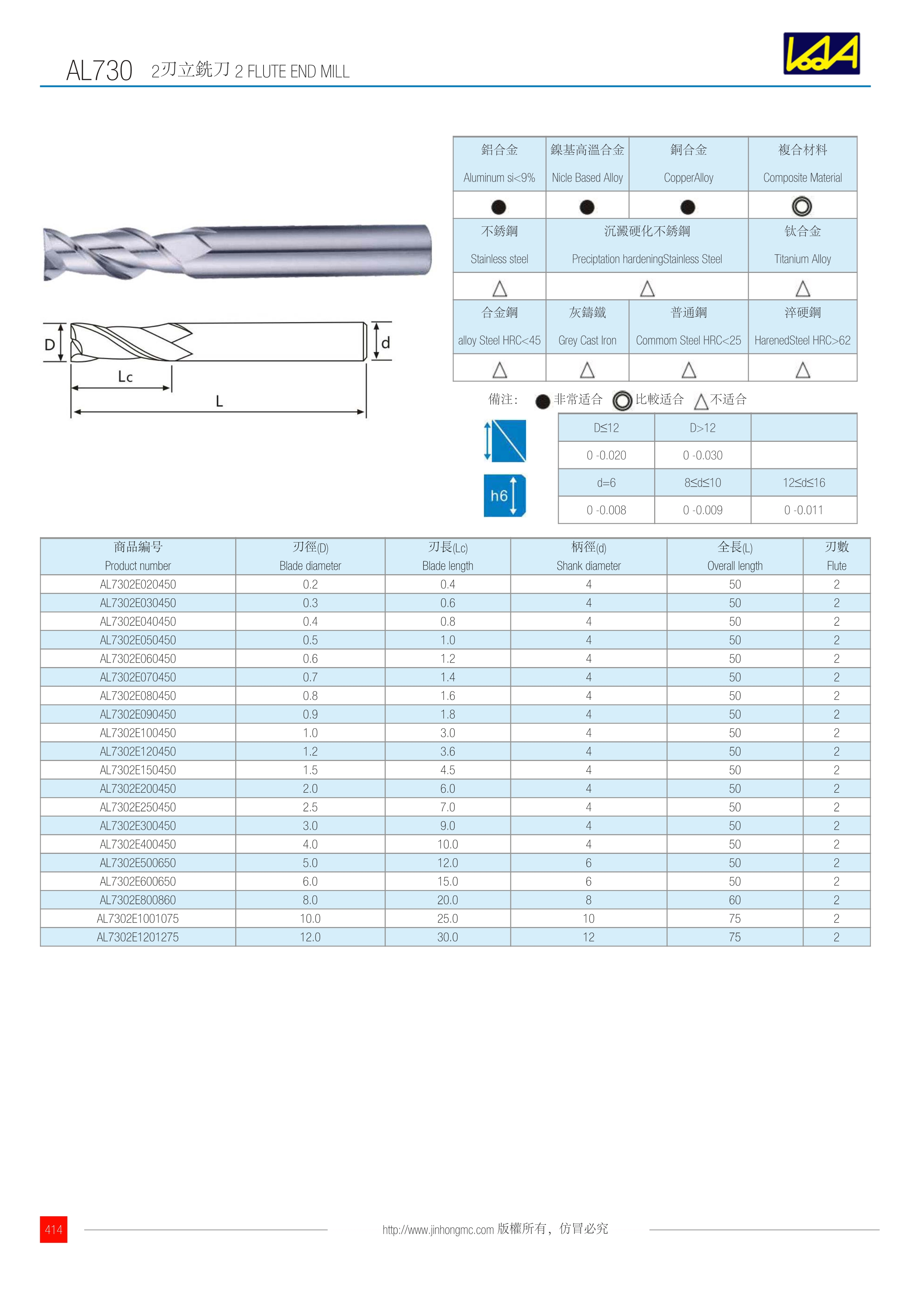 訂購:al730-1 2刃立銑刀