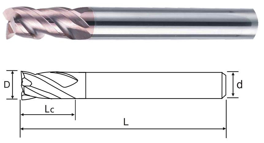 | 商品編號 Product number | 刃徑(D) Blade diameter | 刃長(Lc) Blade length | 柄徑(d) Shank diameter | 全長(L) Overall length | 刃數 Flute |