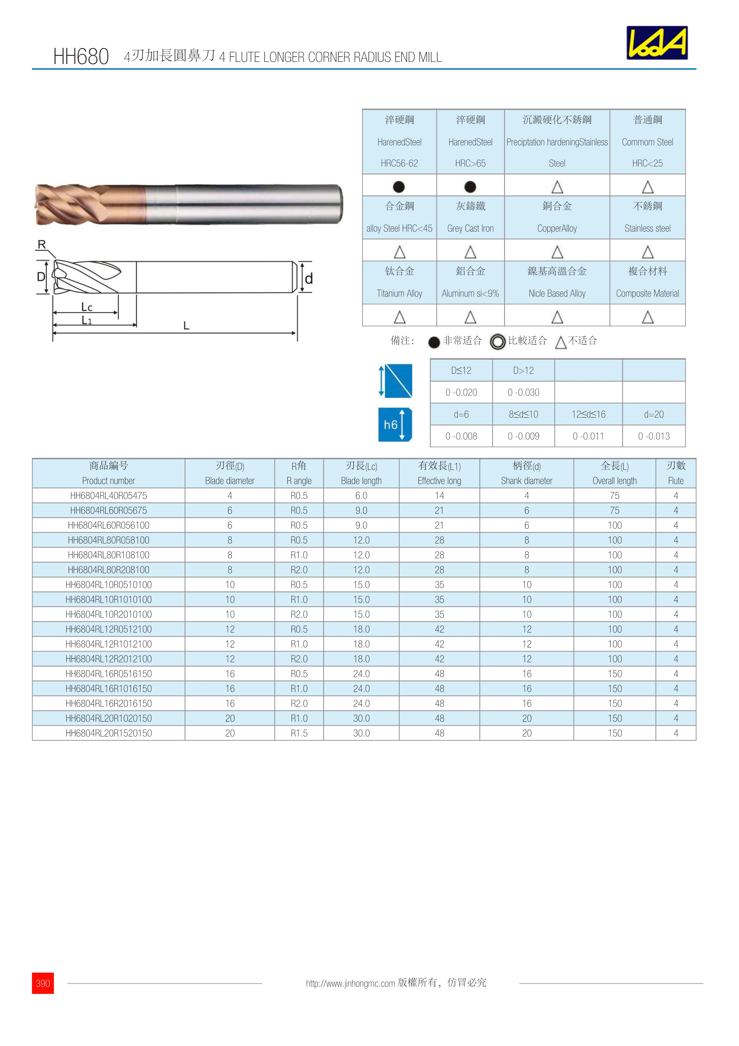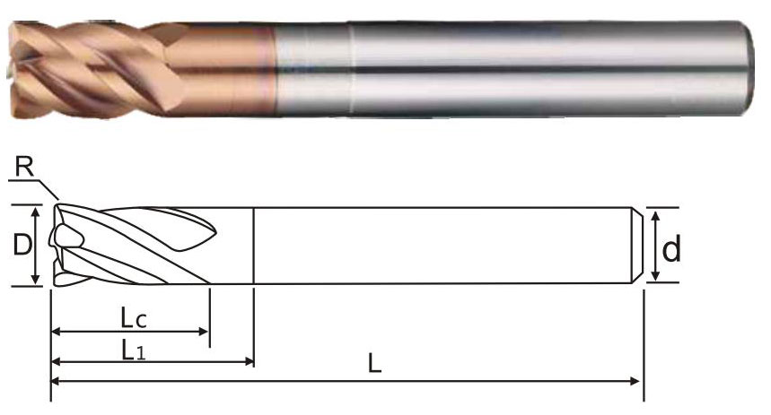 4刃加長圓鼻刀 4 FLUTE LONGER CORNER RADIUS END MILL