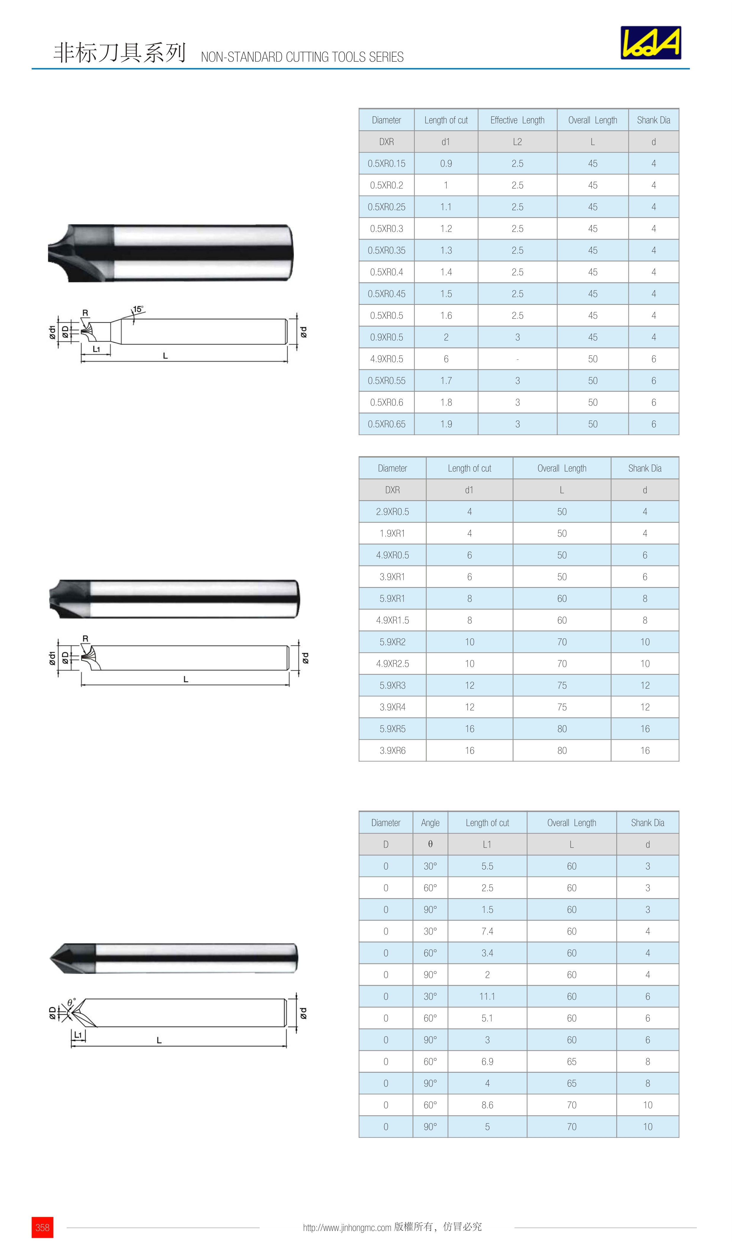 | Diameter | Angle | Length of cut | Overall Length | Shank Dia |