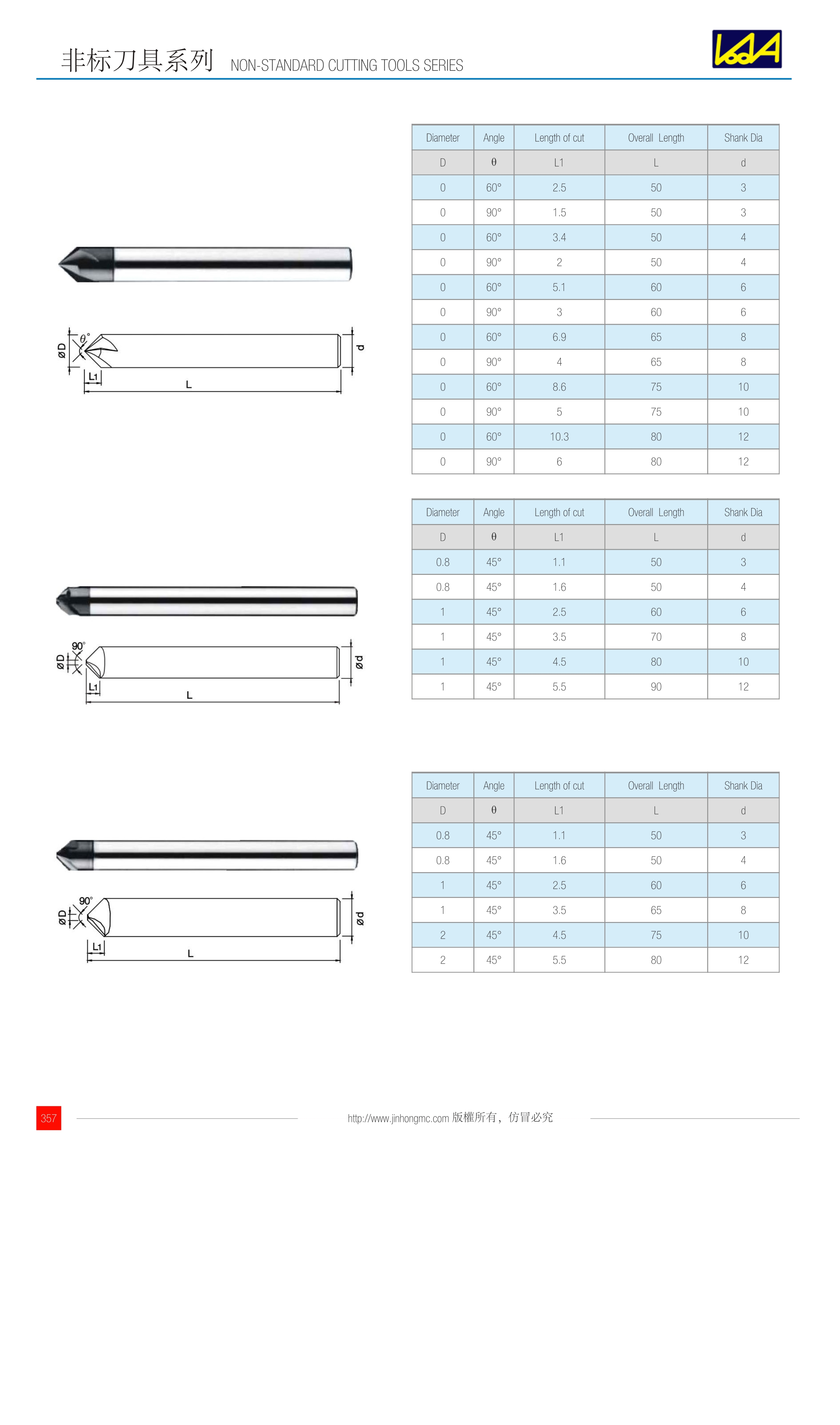DiameterAngleLength of cutOverall  LengthShank Dia