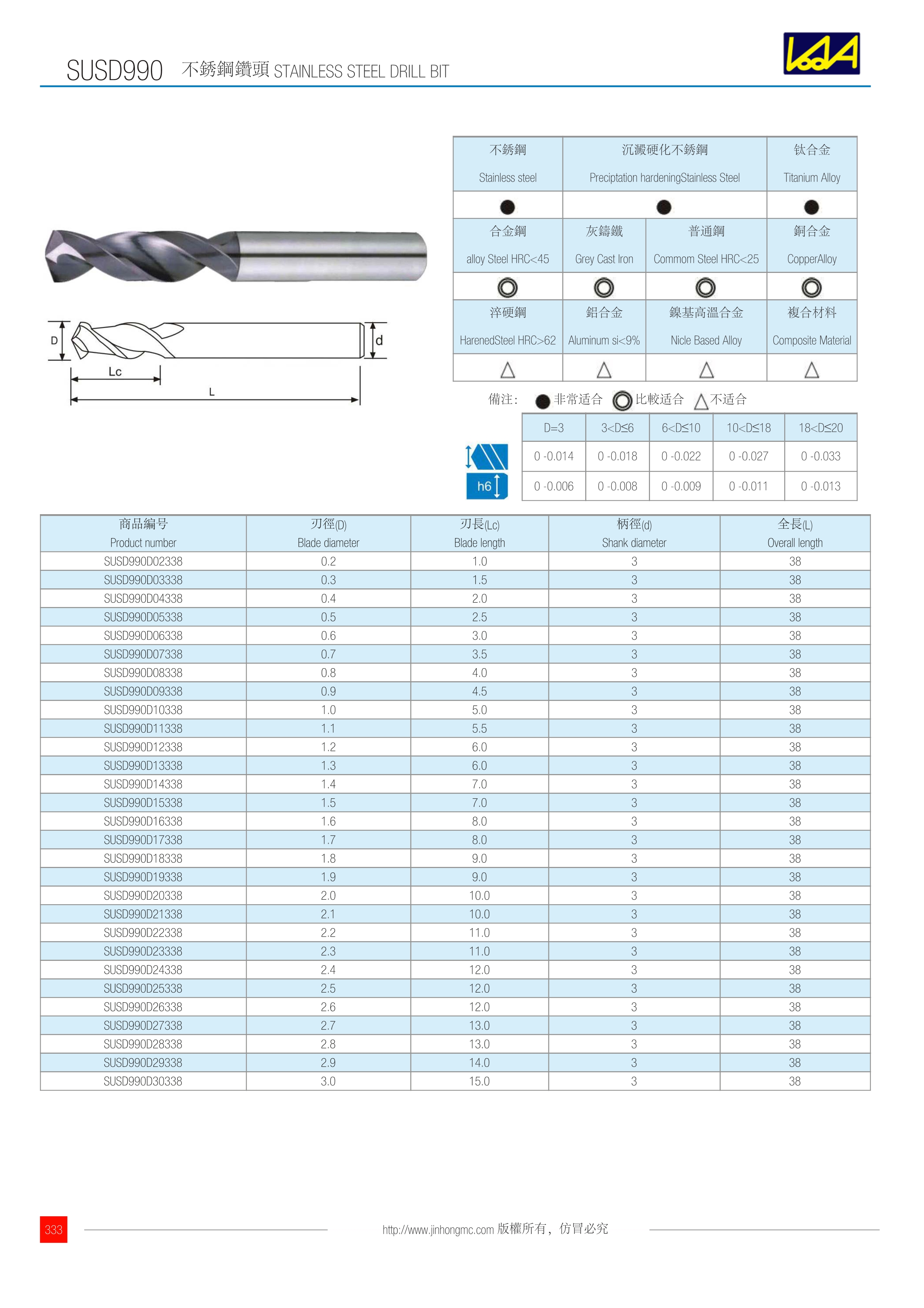 訂購:susd990 不銹鋼鉆頭